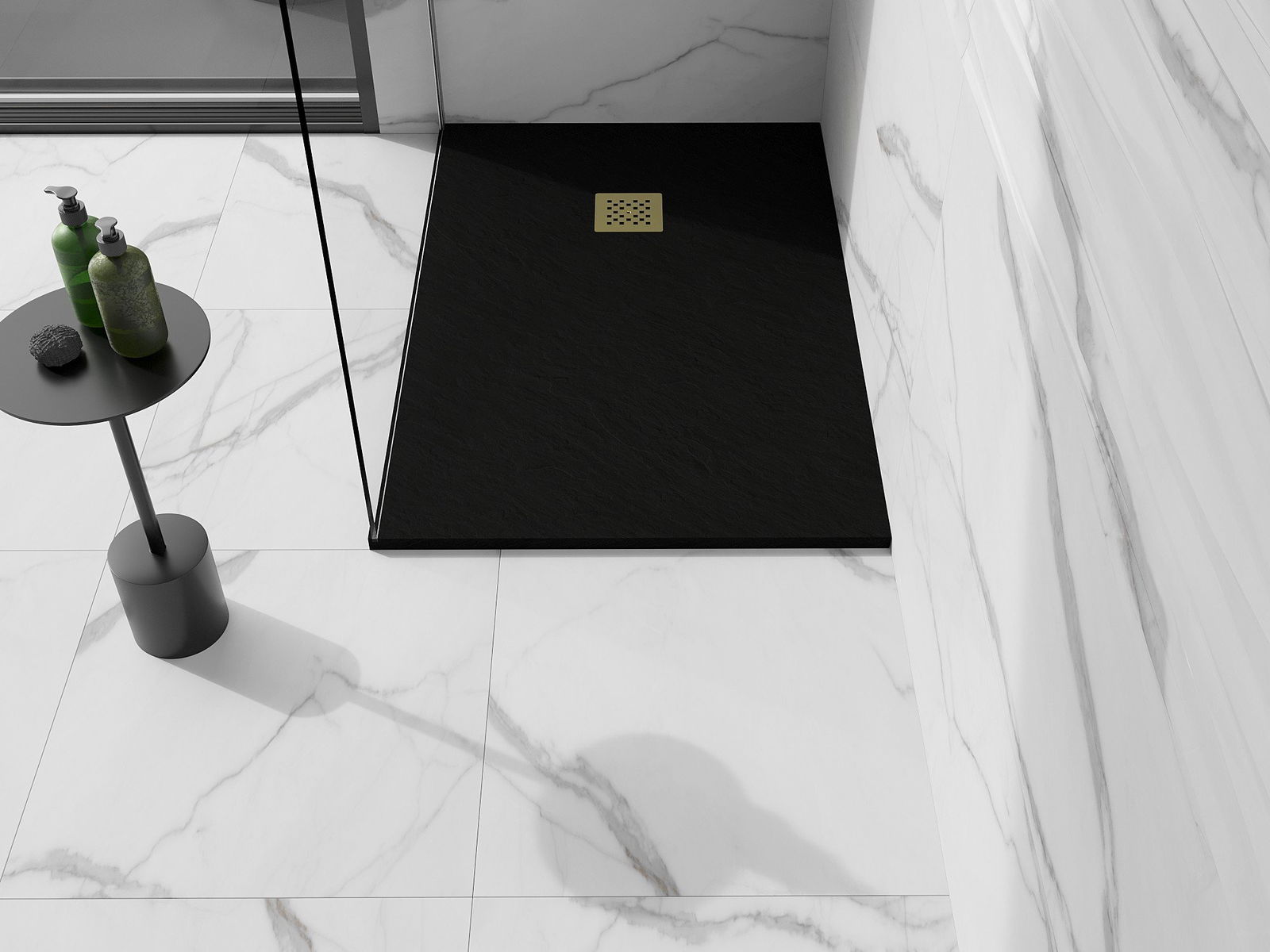 Mexen Stone+ Rechteckige Verbund-Duschwanne 110 x 80 cm, schwarz, goldene Abdeckung - 44708011-G