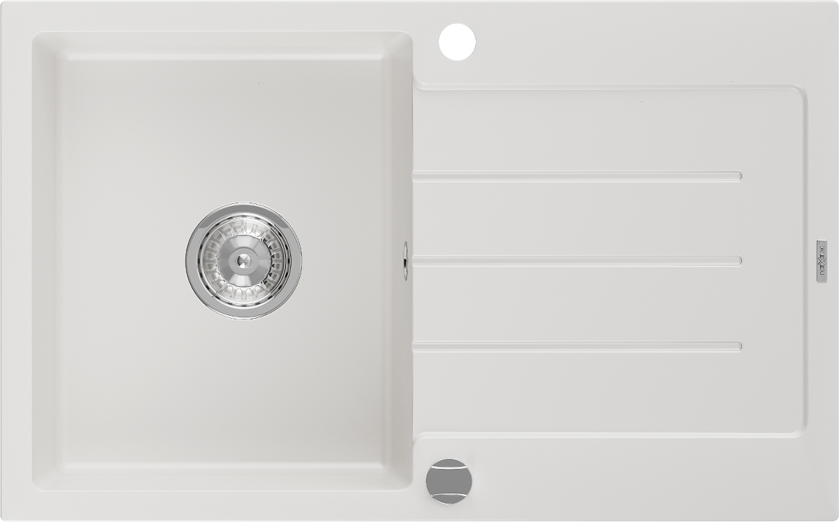 Mexen Bruno Granitspüle 1-Becken mit Abtropffläche 795 x 495 mm, weiß, Siphon Chrom - 6513791010-20