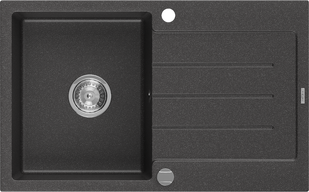 Die Spüle besteht aus hochwertigem Granit. Es ist eine elegante und vor allem praktische Ergänzung zu jeder Küche, unabhängig von ihrem Stil. Hohe Qualität und Granitdauer sorgen für eine langjährige Nutzung.