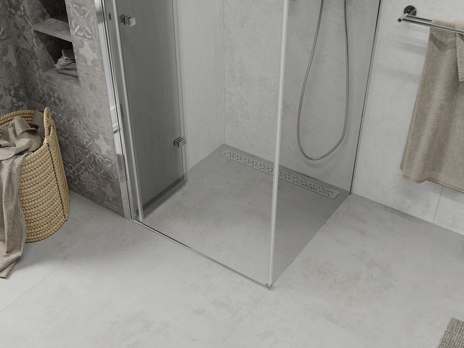 Abhängig von Ihren Bedürfnissen kann das Produkt sowohl auf der Duschschale als auch direkt auf dem Boden montiert werden. Mit der universellen Montagemethode können Sie das Produkt an verschiedene Arten von Badezimmern anpassen und Raum konfigurieren.