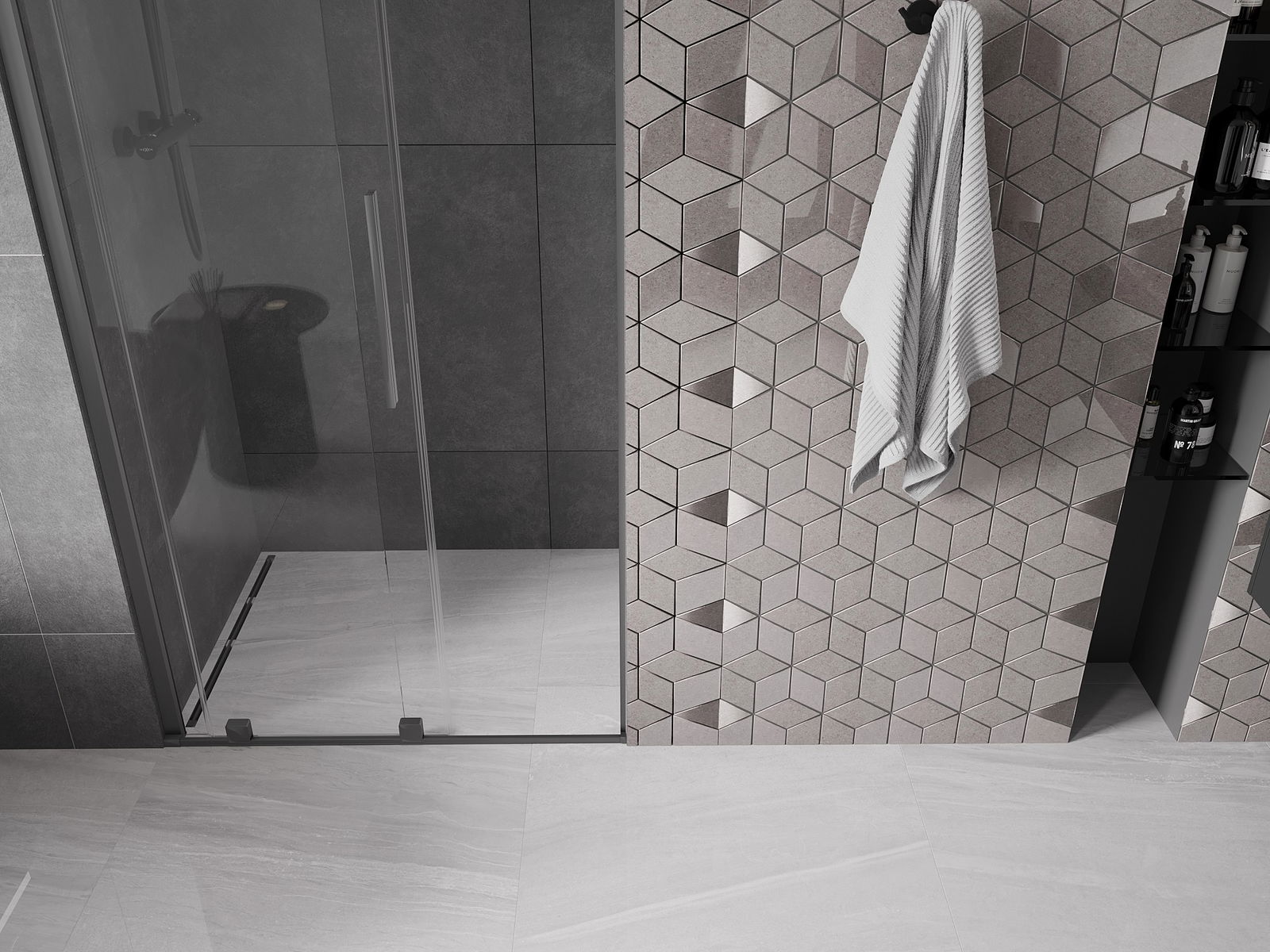 Abhängig von Ihren Bedürfnissen kann das Produkt sowohl auf der Duschschale als auch direkt auf dem Boden montiert werden. Mit der universellen Montagemethode können Sie das Produkt an verschiedene Arten von Badezimmern anpassen und Raum konfigurieren.