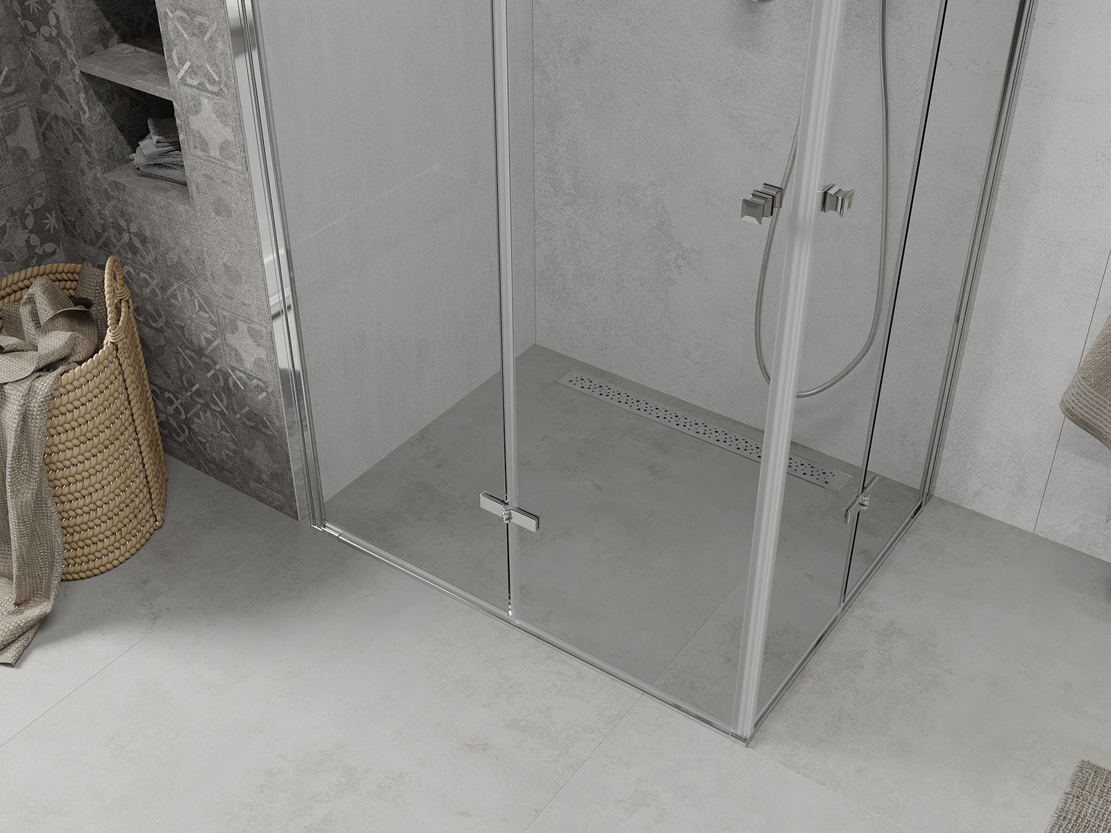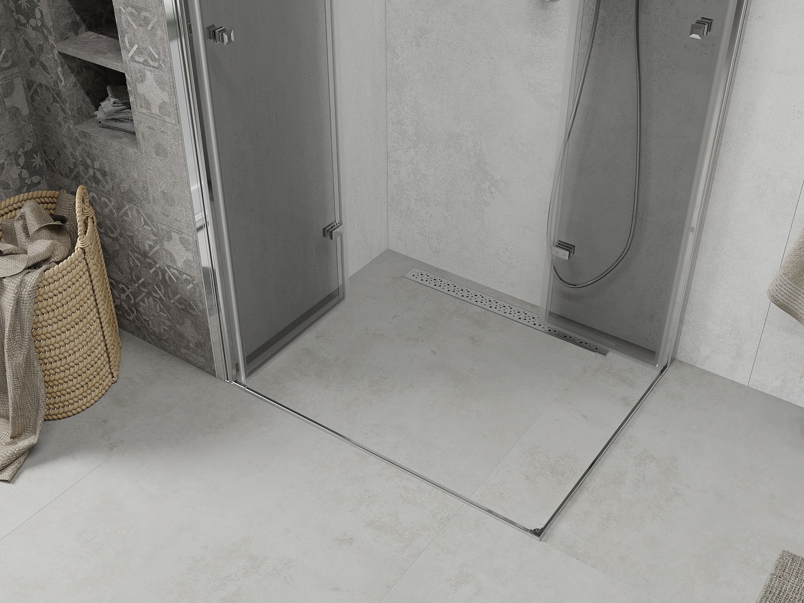 Abhängig von Ihren Bedürfnissen kann das Produkt sowohl auf der Duschschale als auch direkt auf dem Boden montiert werden. Mit der universellen Montagemethode können Sie das Produkt an verschiedene Arten von Badezimmern anpassen und Raum konfigurieren.