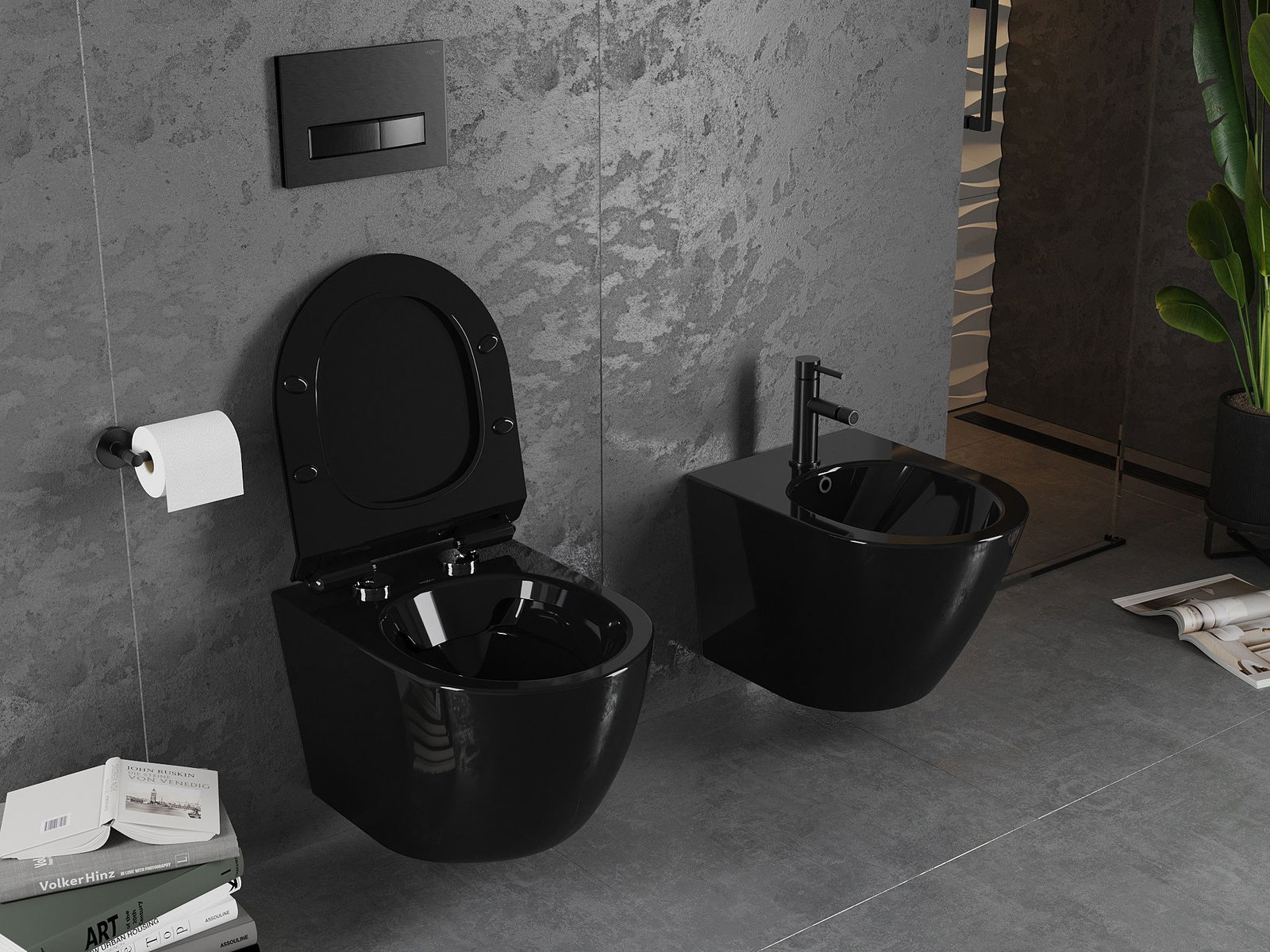 Mexen Lena WC-Schüssel Rimless mit Soft-Close Slim-Sitz, Duroplast, Schwarz Glanz - 30224070