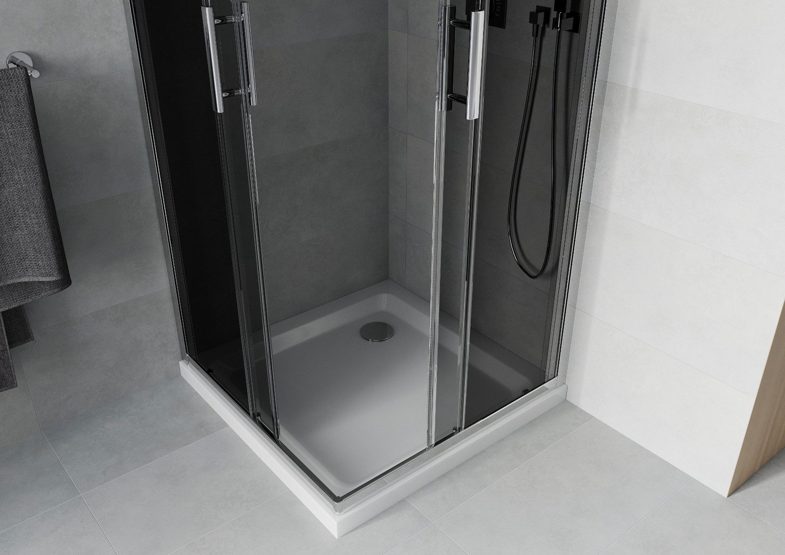 Mexen Rio quadratische Duschkabine 80 x 80 cm, Graphit, Chrom + Flat Duschwanne, Weiß - 860-080-080-01-40-4010