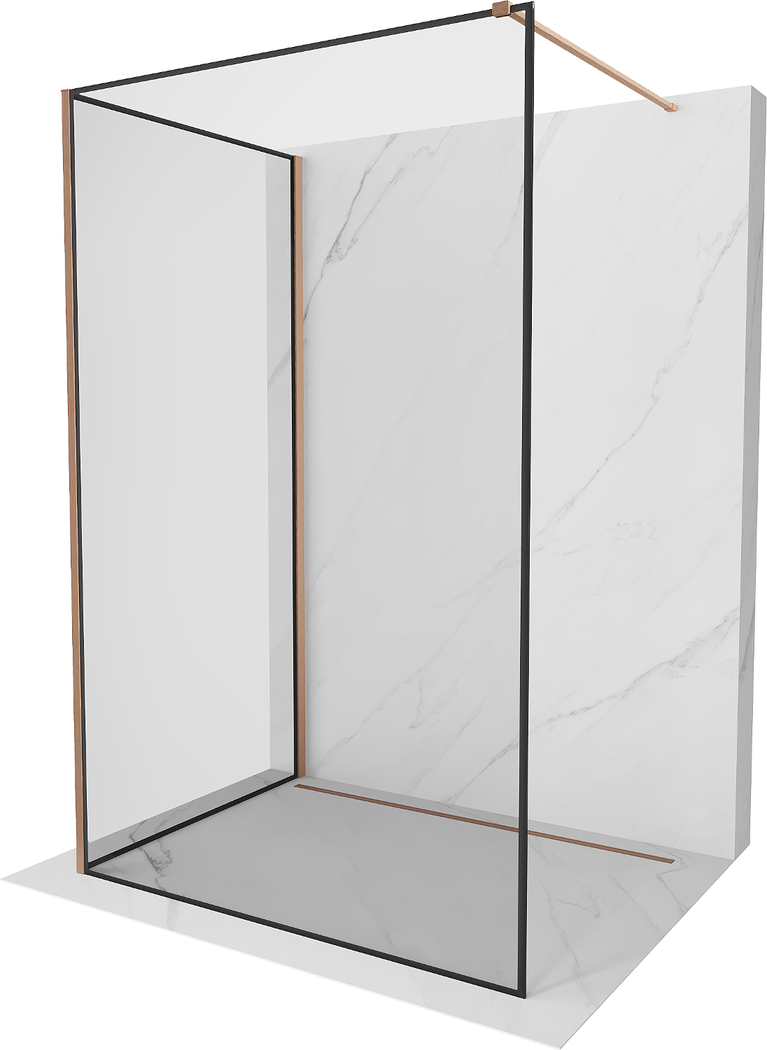 Mexen Kioto Duschwand Walk-in 90 x 90 cm, schwarzer Rahmen, gebürstetes Kupfer - 800-090-212-65-70-090