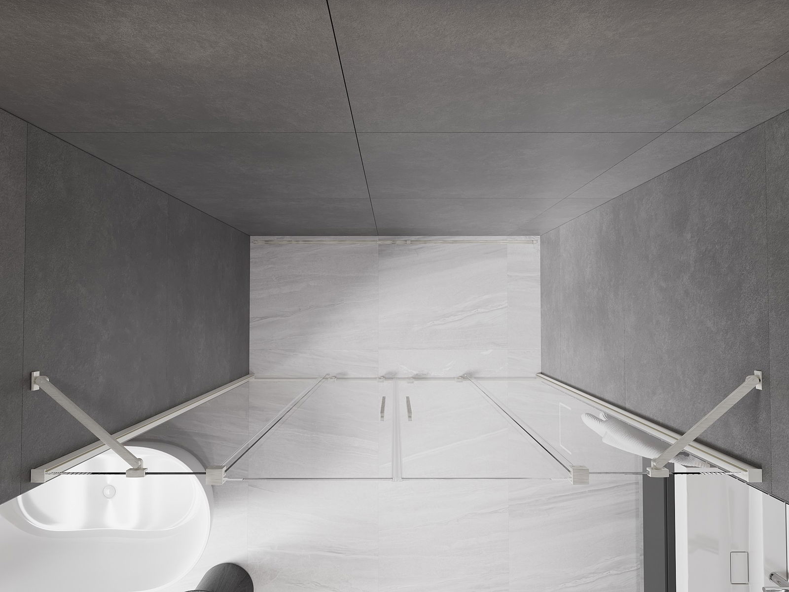 Der praktische und bequeme Griff ist aus rostfreiem Stahl gefertigt. Die modische Form, kombiniert mit einer auf die Farbe der Profile abgestimmten Oberfläche, verleiht dem Ganzen ein modernes und stilvolles Aussehen, das die Ästhetik eines jeden Badezimmers aufwertet.