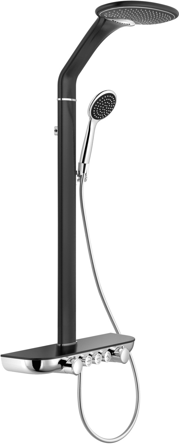 Die Duscharmatur mit Kosmetikablage ist eine funktionelle Lösung, die Bedienkomfort und Ästhetik vereint. Auf der Ablage können Kosmetika, Seifen, Shampoos und andere Accessoires während des Badens griffbereit aufbewahrt werden.