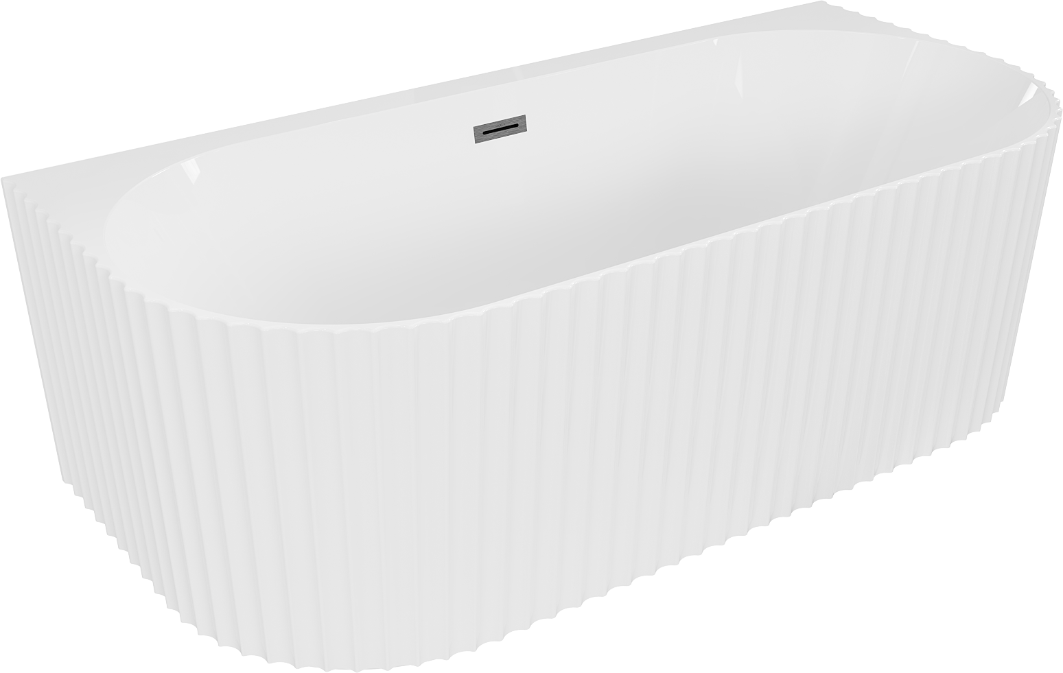 Mexen Sella freistehende, geriffelte Wandbadewanne 170 x 80 cm, weiß glänzend, Überlauf gun gray gebürstet - 52711708000-66