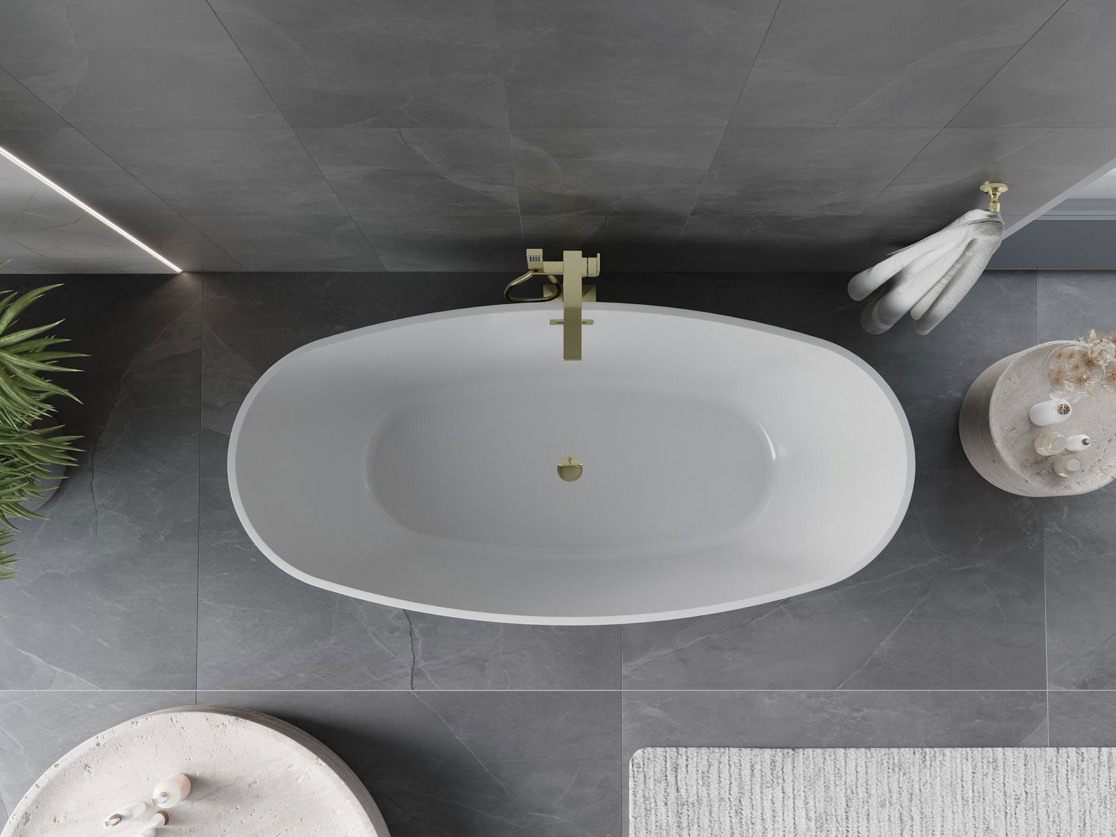 Mexen Olea freistehende Wanne Design 170 x 80 cm, weiß/schwarz, Überlauf gold - 52821708075-50