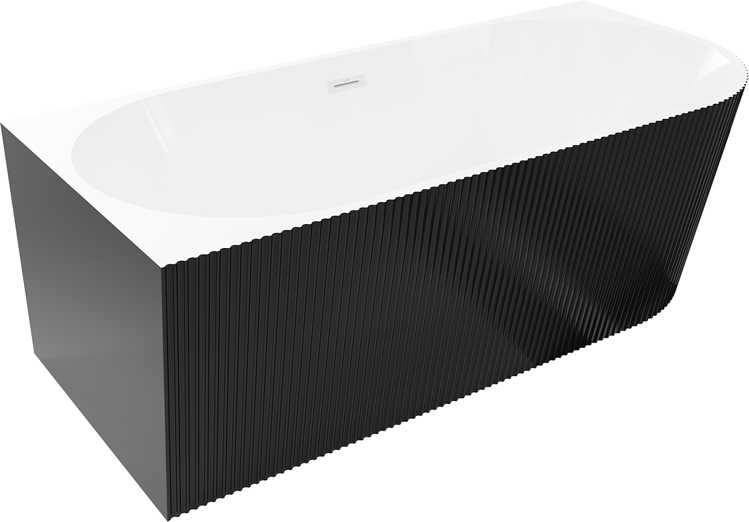 Mexen Silo freistehende Eckbadewanne links geriffelt 150 x 75 cm, weiß/schwarz, Überlauf weiß- 52891507575L-20