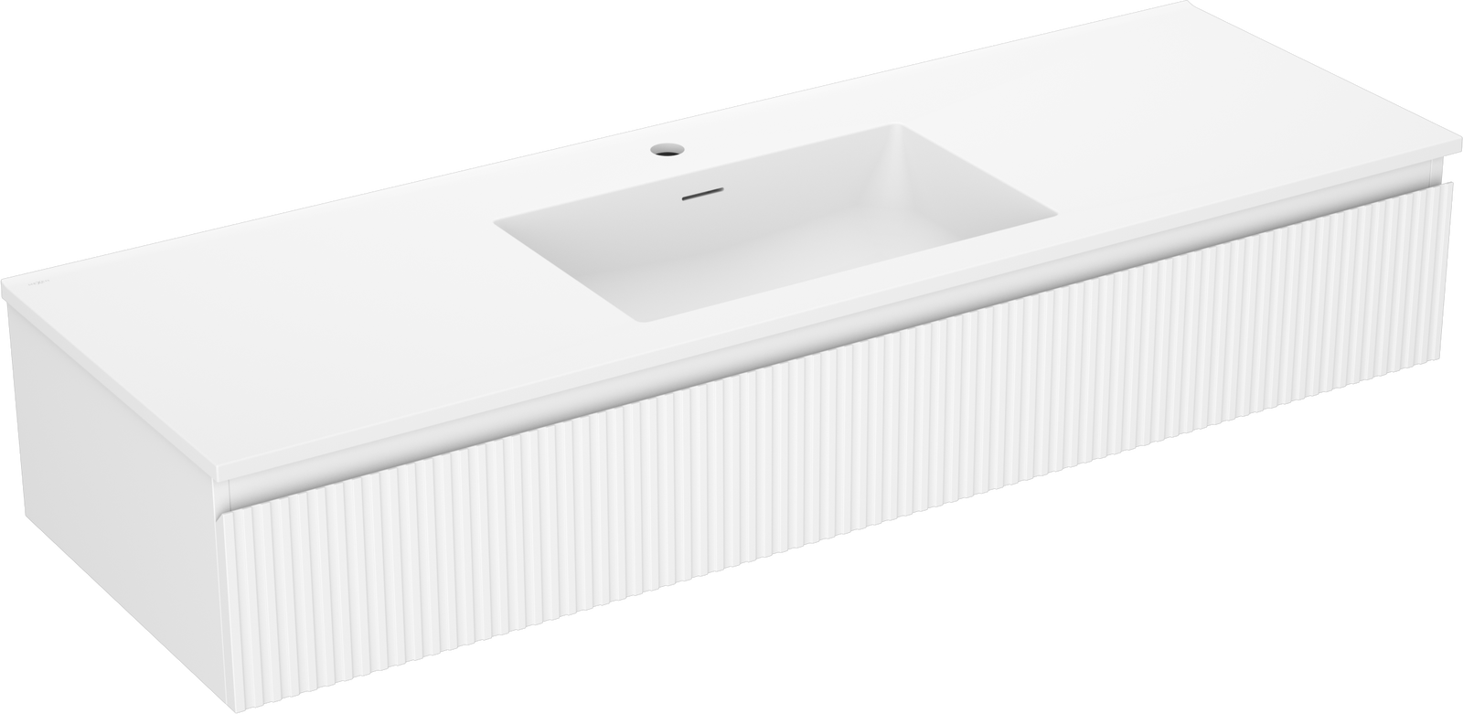 Mexen Rivel Badezimmer-Schrank 140 cm mit Waschbecken Otis, 1 Schublade, gerillt, weiß matt - 91A20-14023-1-BF01-W18M01