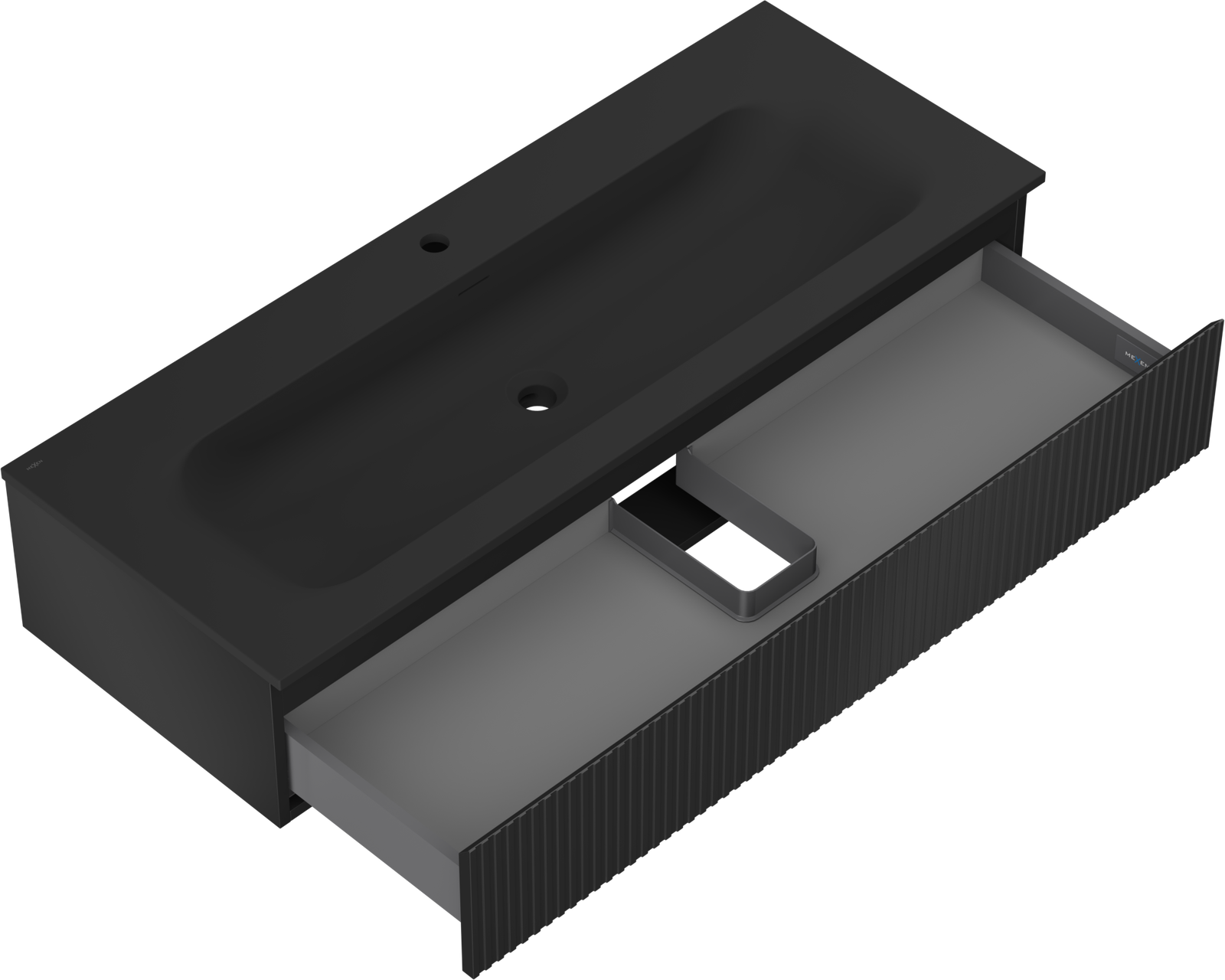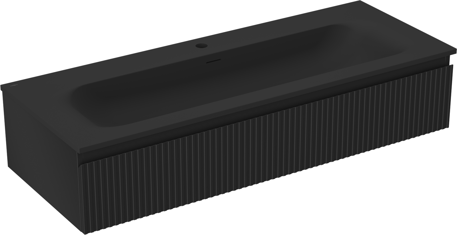 Mexen Rivel Badezimmerschrank 120 cm mit Waschbecken Vela, 1 Schublade, gerillt, schwarz matt - 91A20-12023-1-BF71-W23M71