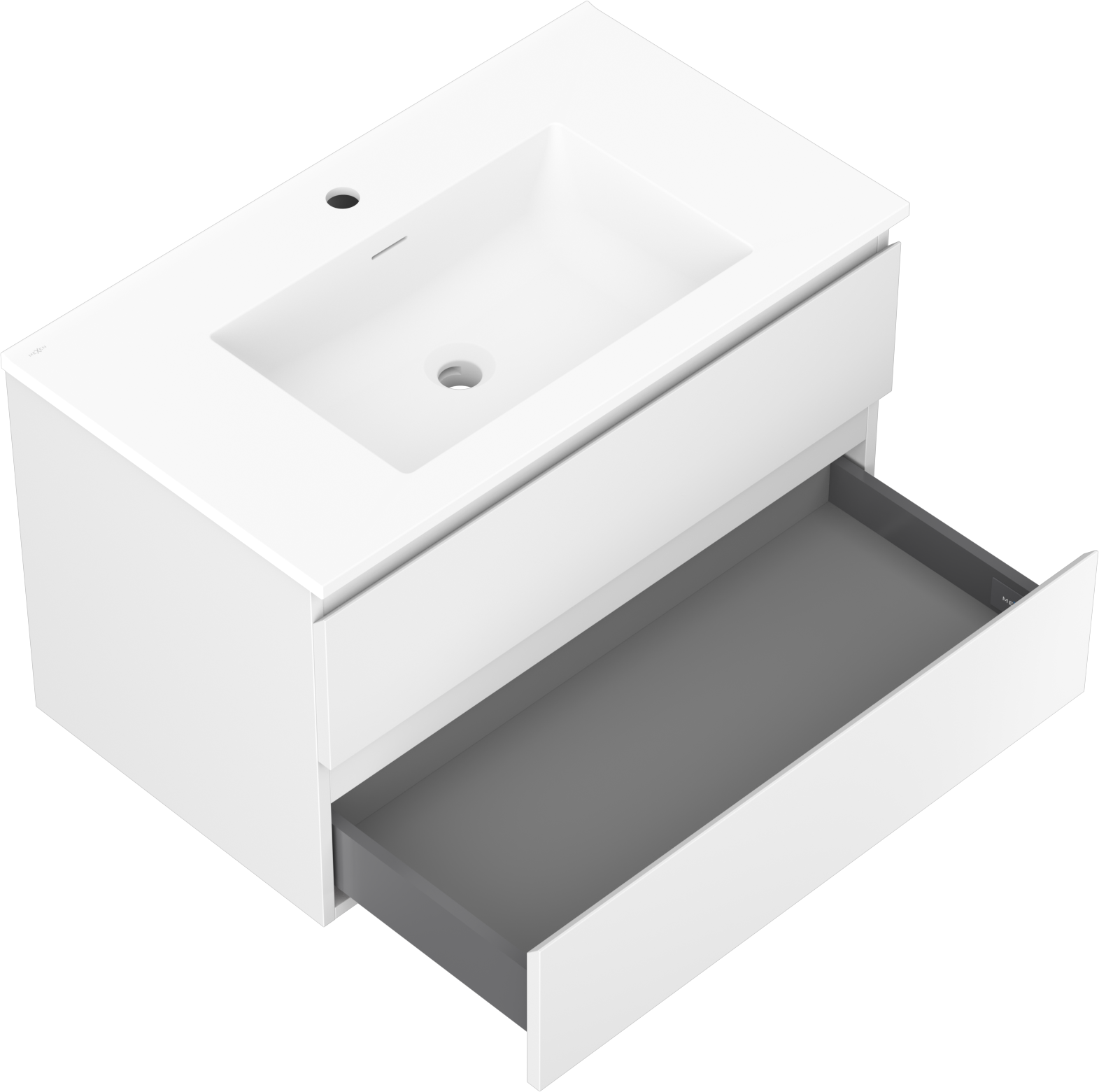 Mexen Orio Badezimmerschrank 80 cm mit Waschbecken Otis, 2 Schubladen, weiß matt - 91A10-08047-2-BFF01-W18M01
