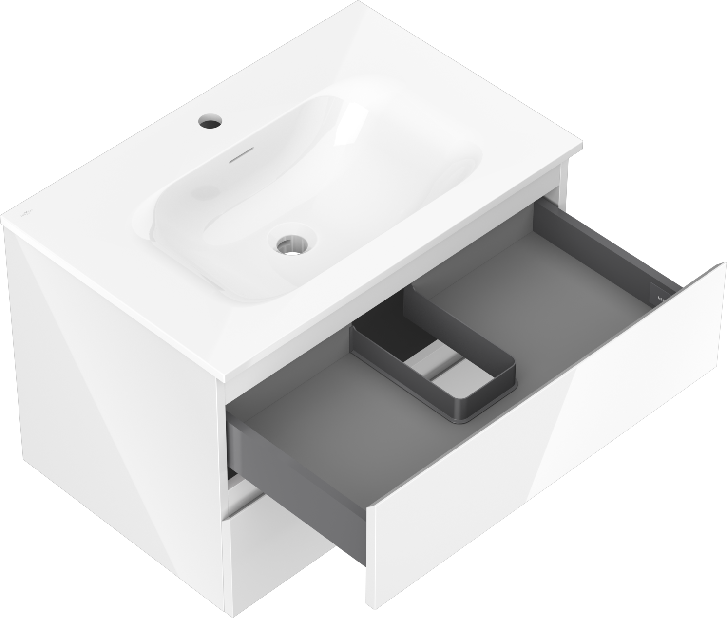Mexen Orio Badezimmer-Unterschrank 70 cm mit Waschbecken Vela, 2 Schubladen, weiß glänzend - 91A10-07047-2-BFF00-W23M00