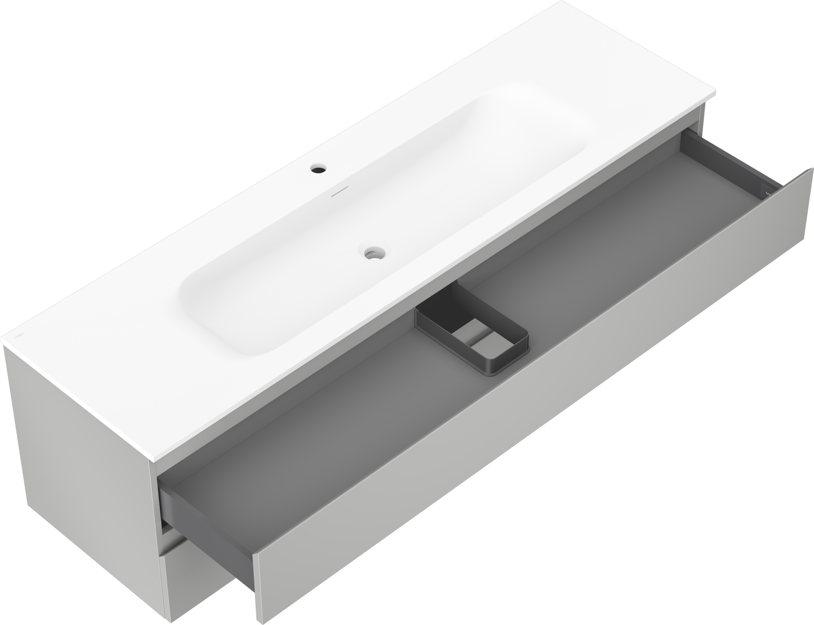 Der Ausschnitt in der Schublade ist so gestaltet, dass er den Siphon aufnehmen kann, der für Waschbeckeninstallationen erforderlich ist. Dadurch kann das Möbelstück voll funktionsfähig montiert werden, ohne auf den Platz in der Schublade zugunsten der Installation verzichten zu müssen.