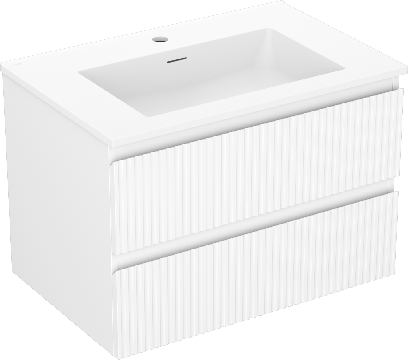 Mexen Rivel 70 cm Badezimmerunterschrank mit Waschbecken Otis, 2 Schubladen, geriffelt, weiß matt - 91A20-07047-2-BFF01-W18M01