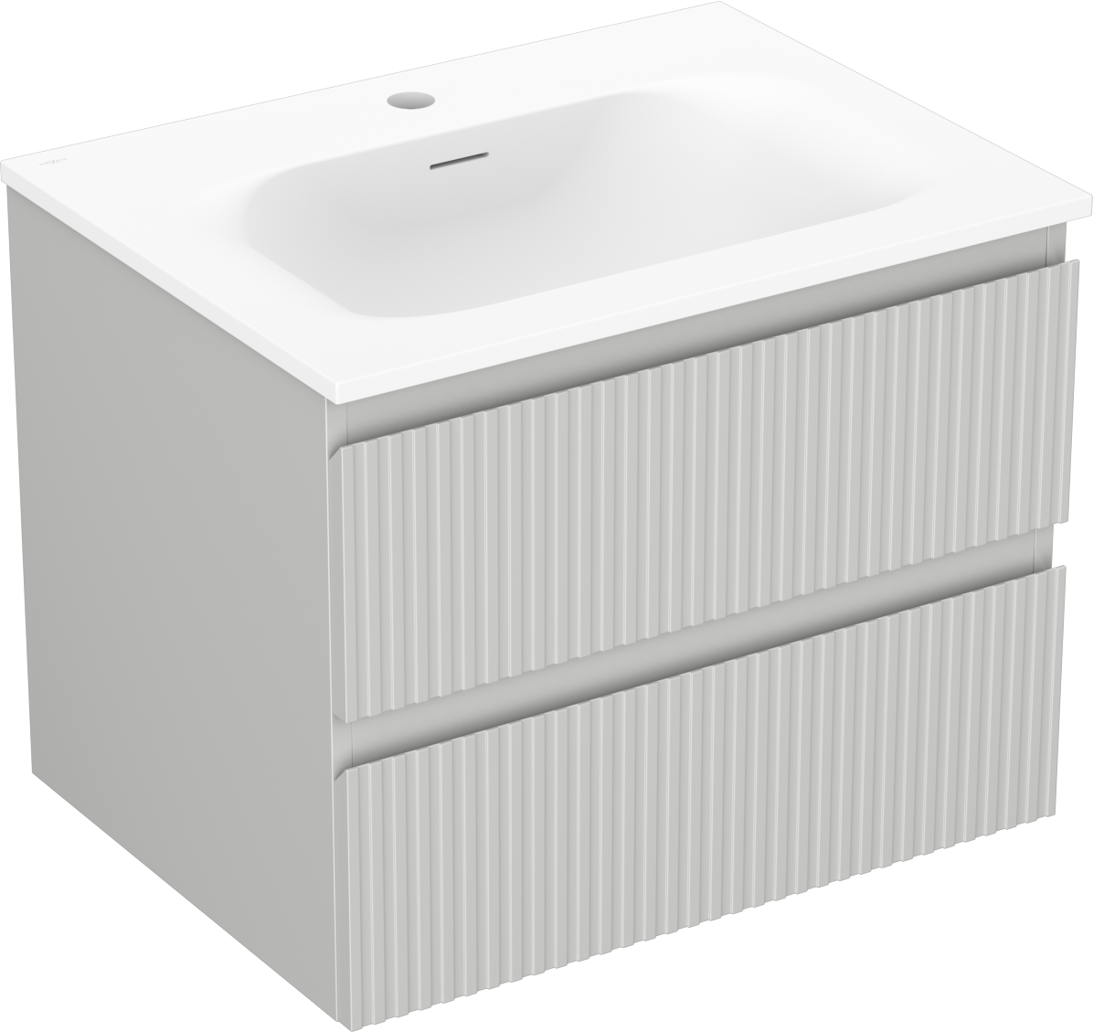 Mexen Rivel Badezimmerschrank 60 cm mit Waschbecken Vela, 2 Schubladen, gerillt, grau matt/weiß matt