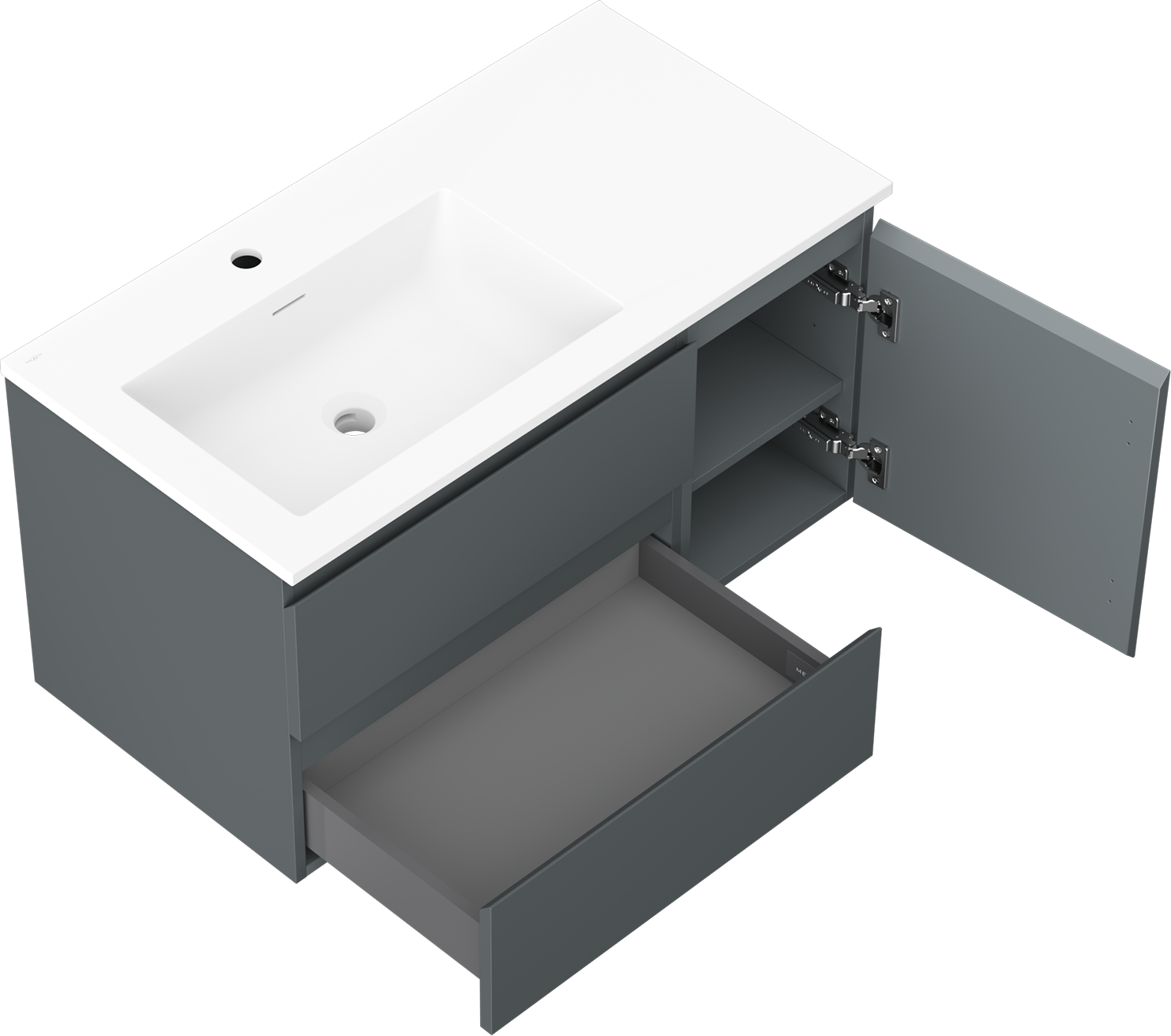 Mexen Orio Badezimmerschrank 90 cm mit linkem Waschbecken Otis, 2S, 1T, Graphit matt/Weiß matt - 91A13-09047-3-BBFFF66-W18L01