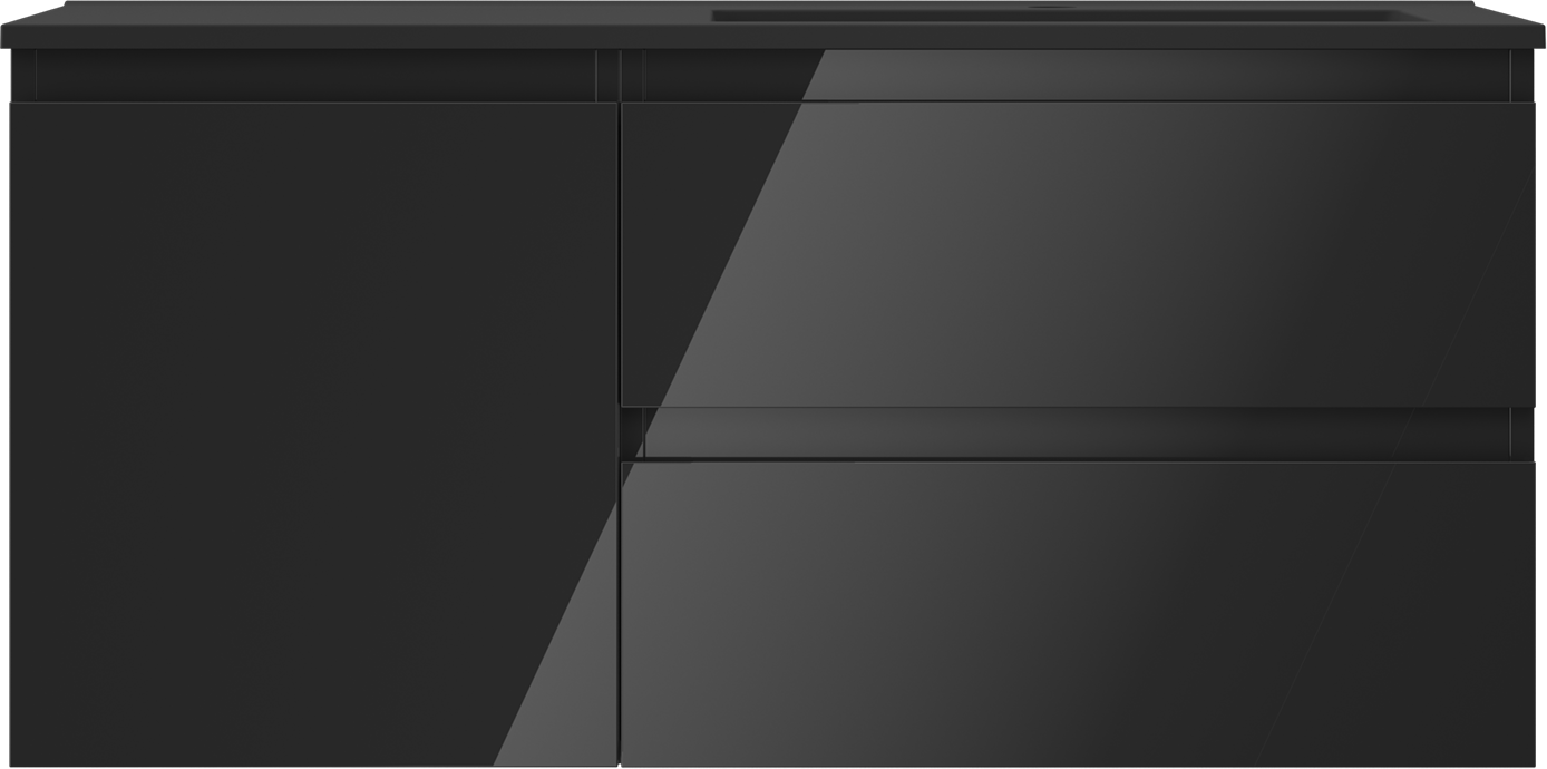 Mexen Orio Badezimmerschrank 100 cm mit Waschbecken Otis rechts, 2S, 1D, Schwarz Glanz/Schwarz Matt - 91A13-10047-3-BBFFF70-W18?