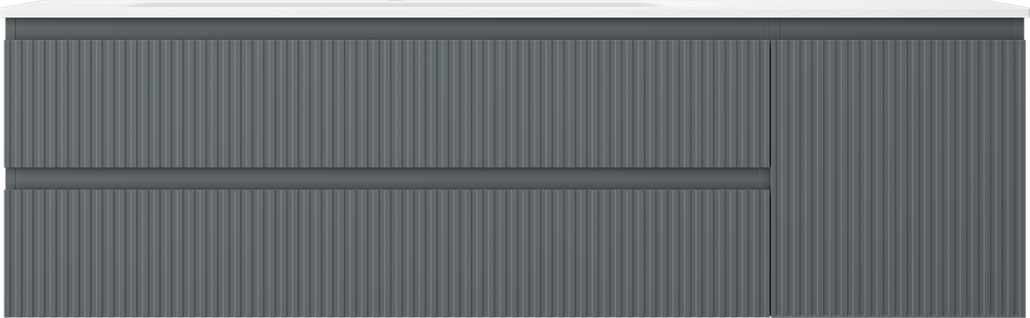 Mexen Rivel Badezimmerschrank 160 cm mit Waschbecken Vela links, 2S, 1D, gerillt, graphit/weiß matt