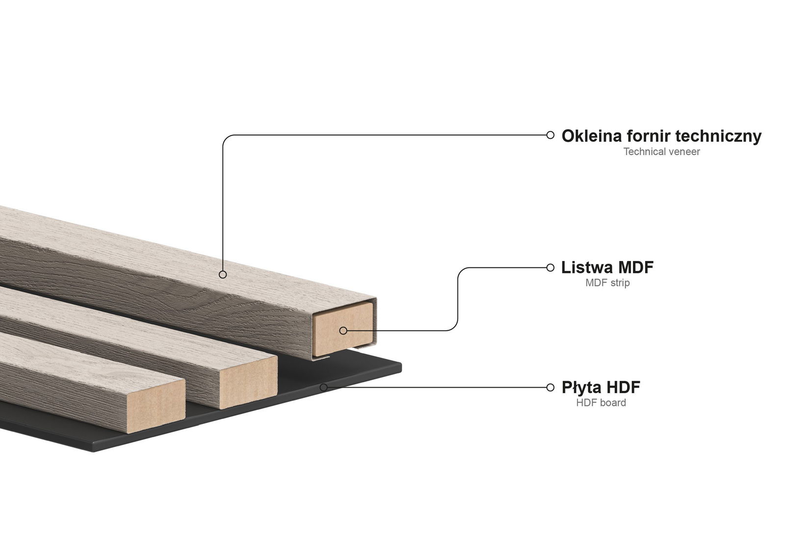 Material der Lamellen: MDF-Leiste + Technisches Furnier
