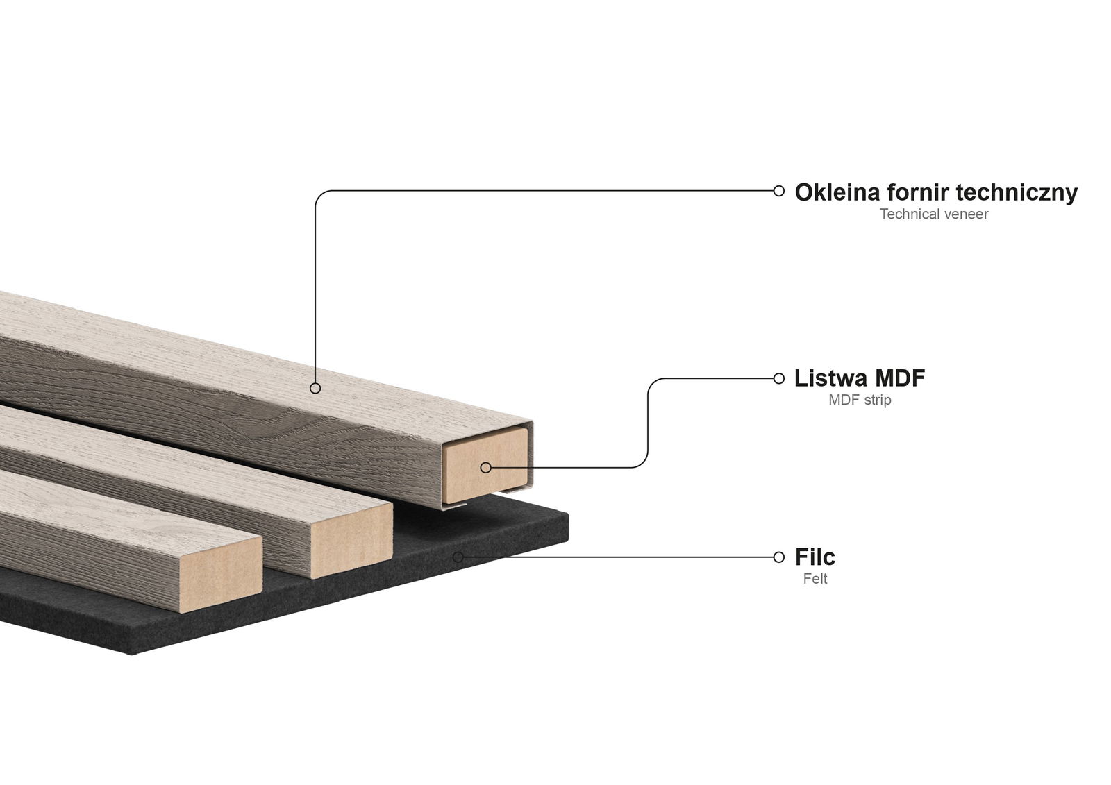 Material der Lamellen: MDF-Leiste + technisches Furnier