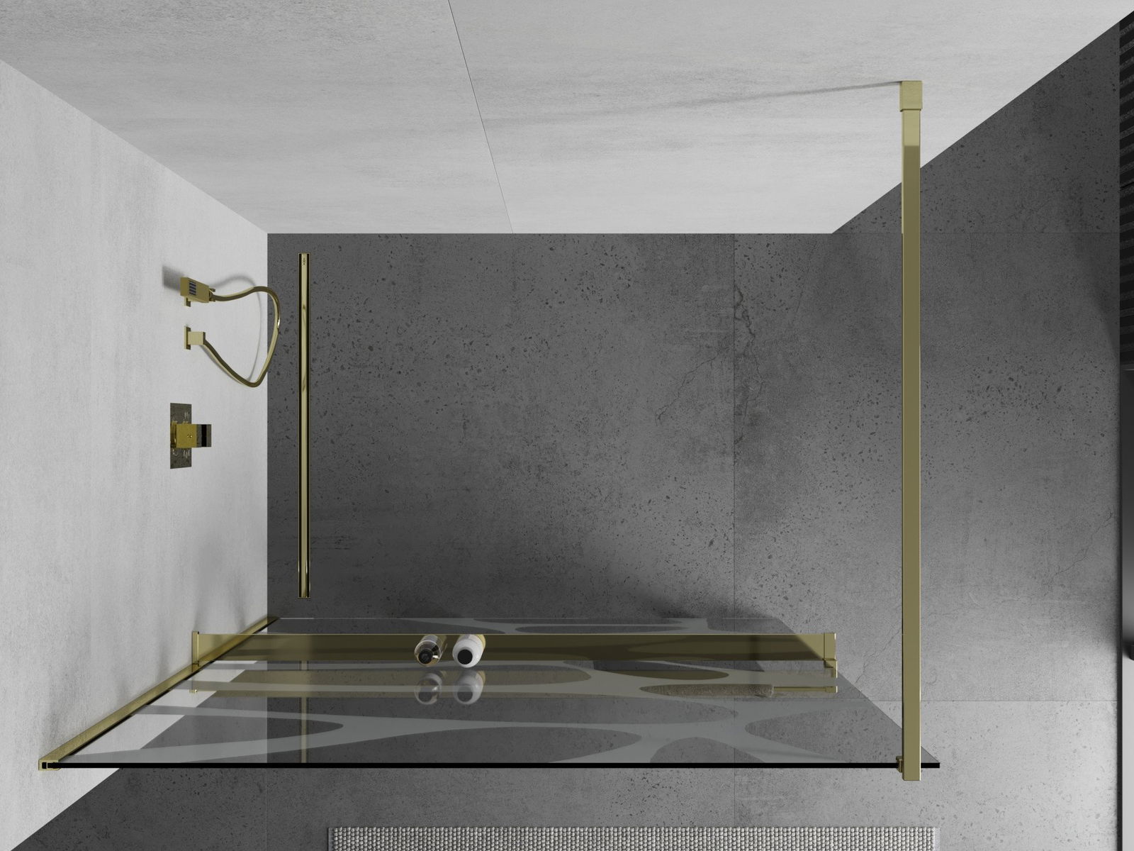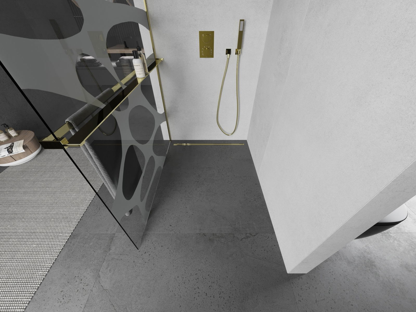 Mexen Kioto+ shower screen with shelf Walk-in 120 x 200 cm, white wave, gold - 800-120-121-50-97