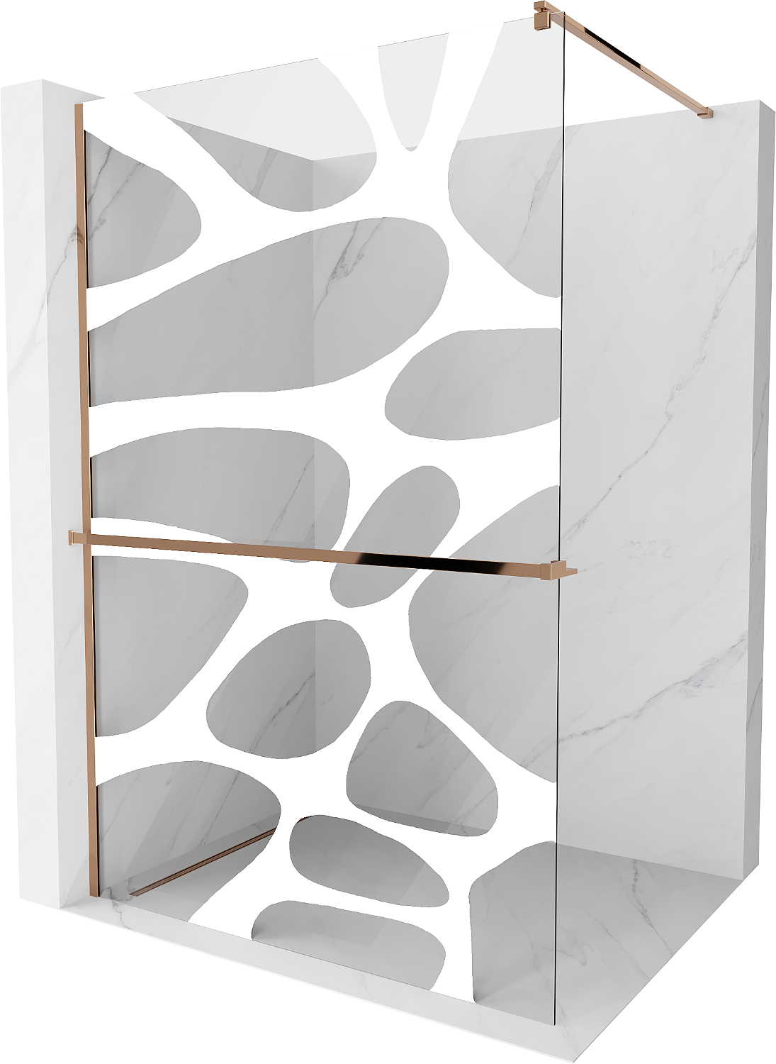 Mexen Kioto+ shower screen with shelf Walk-in 110 x 200 cm, white wave, pink gold - 800-110-121-60-97