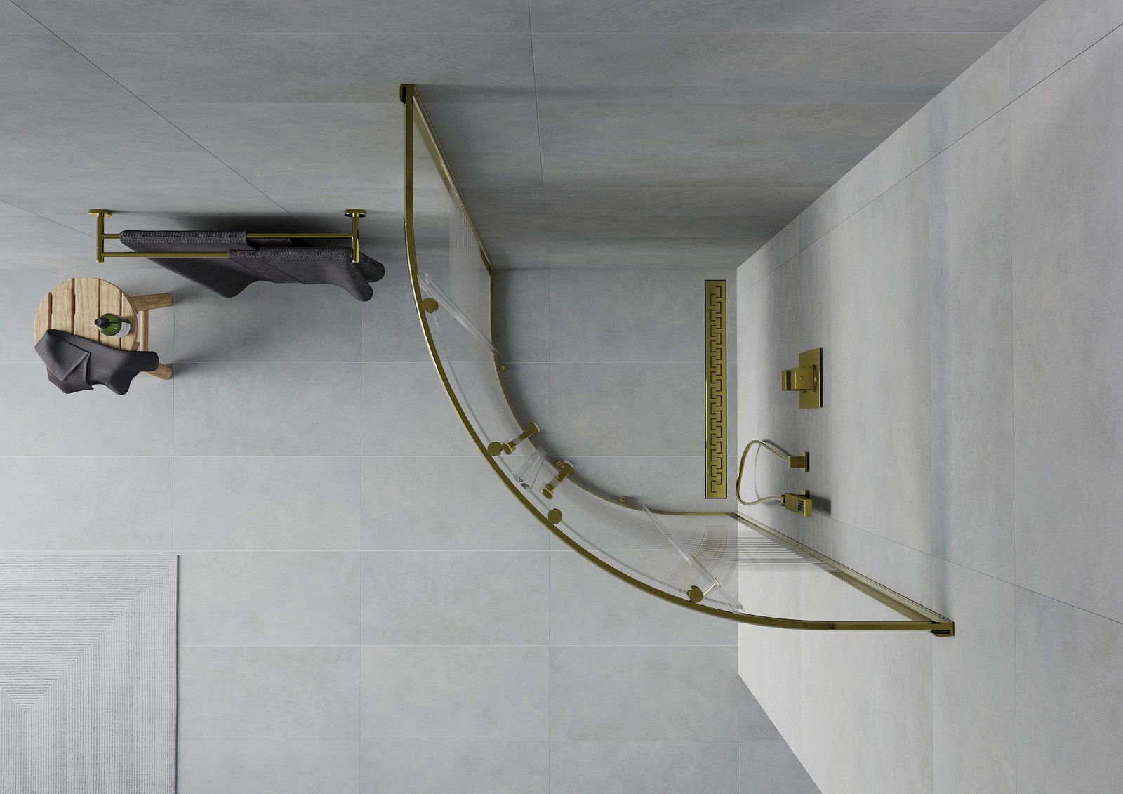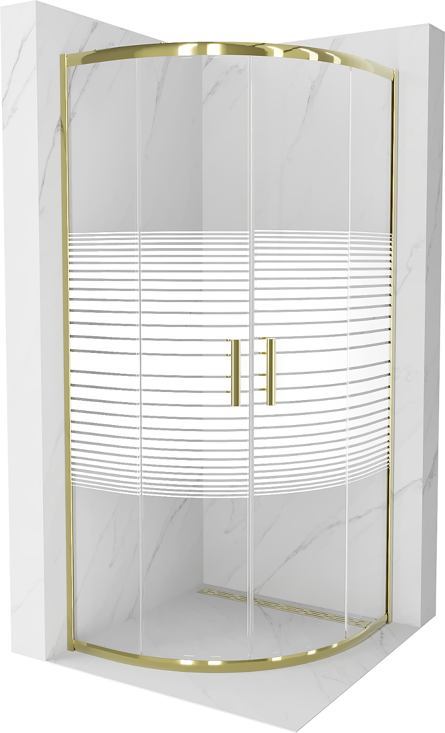 Mexen Rio semi-circular shower cabin 80 x 80 cm, white stripes, gold - 863-080-080-50-20