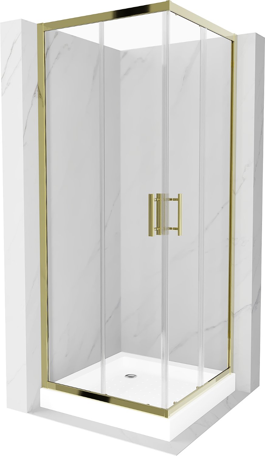 Mexen Rio square shower enclosure 70 x 70 cm, transparent, gold + Rio tray, white - 860-070-070-50-00-4510