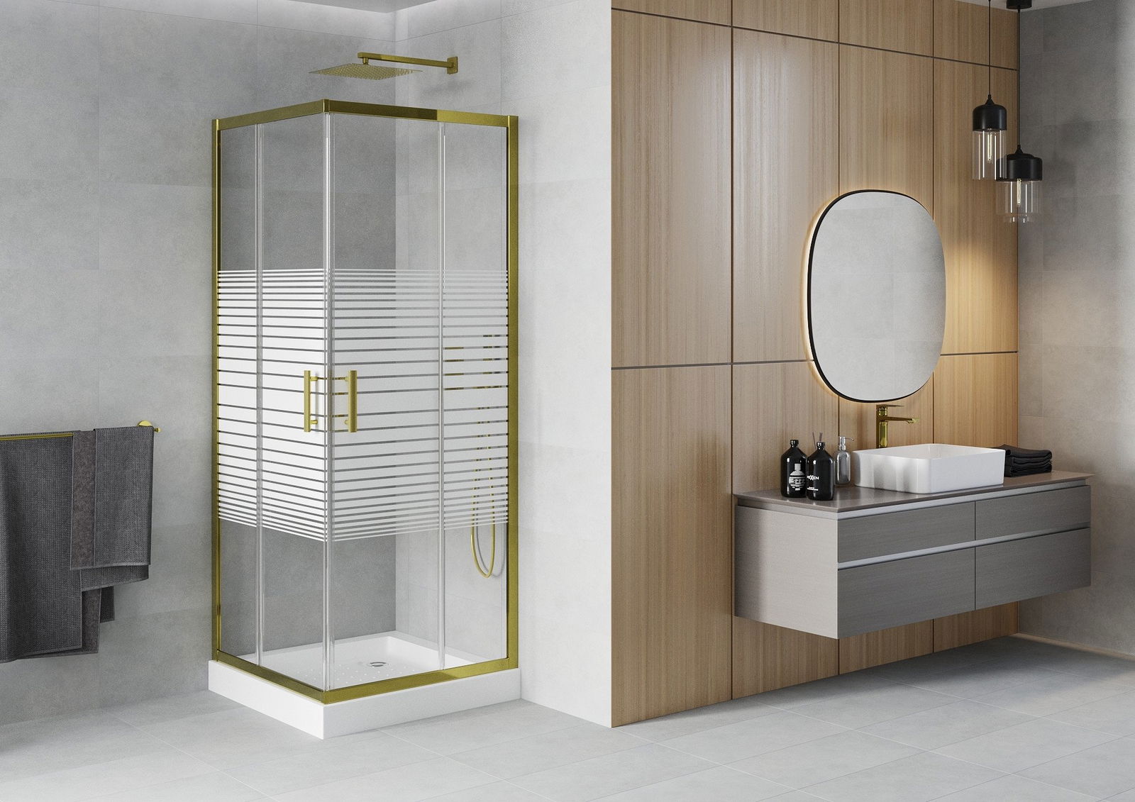 Mexen Rio square shower enclosure 70 x 70 cm, white stripes, gold + tray, white - 860-070-070-50-20-4510