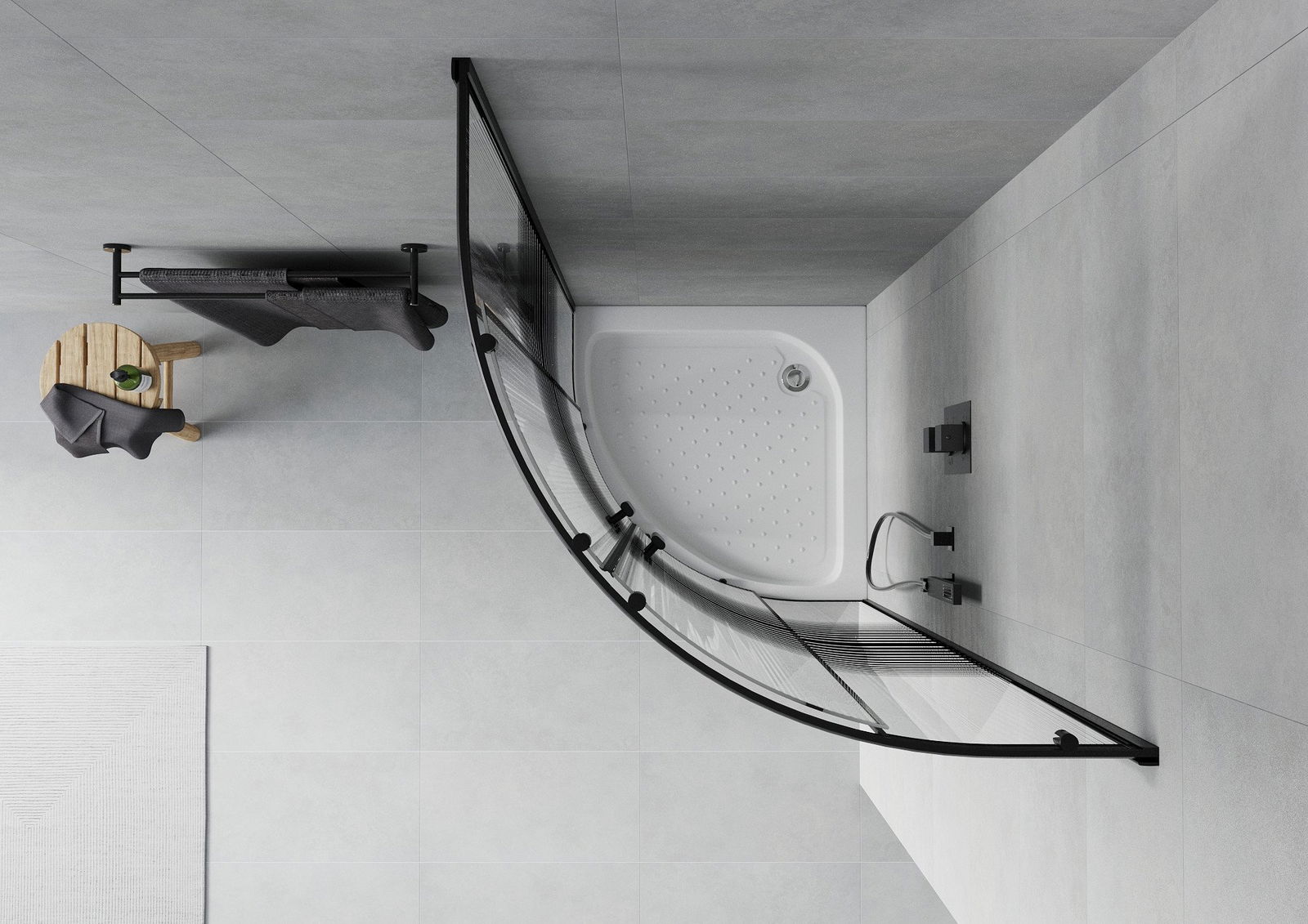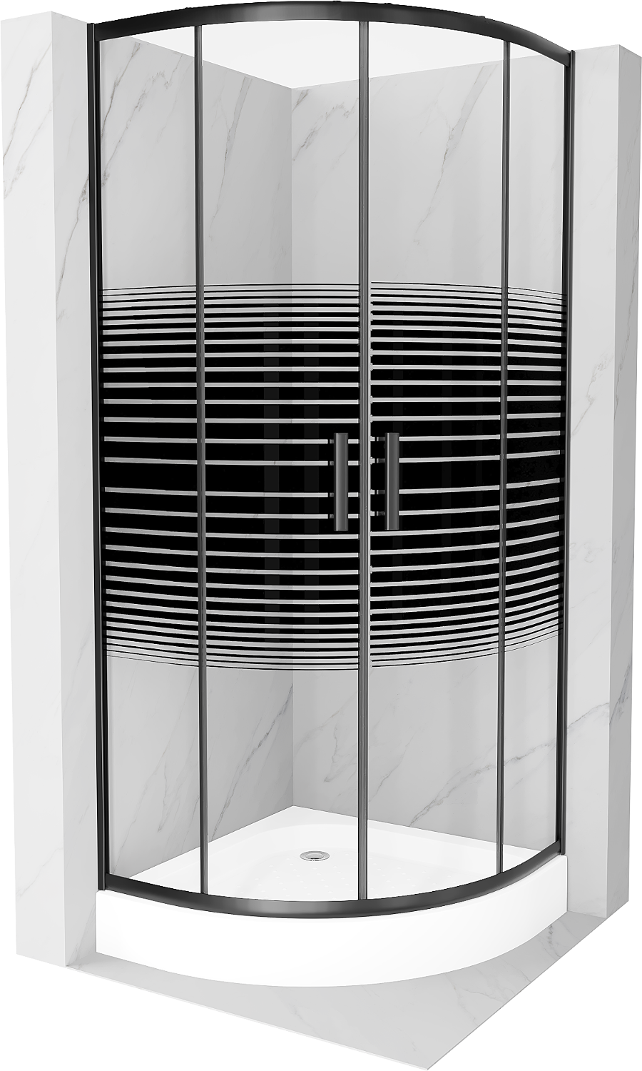 Mexen Rio Semi-Circular Shower Cabin 70 x 70 cm, Black Stripes, Black + Rio Tray, White - 863-070-070-70-20-4710