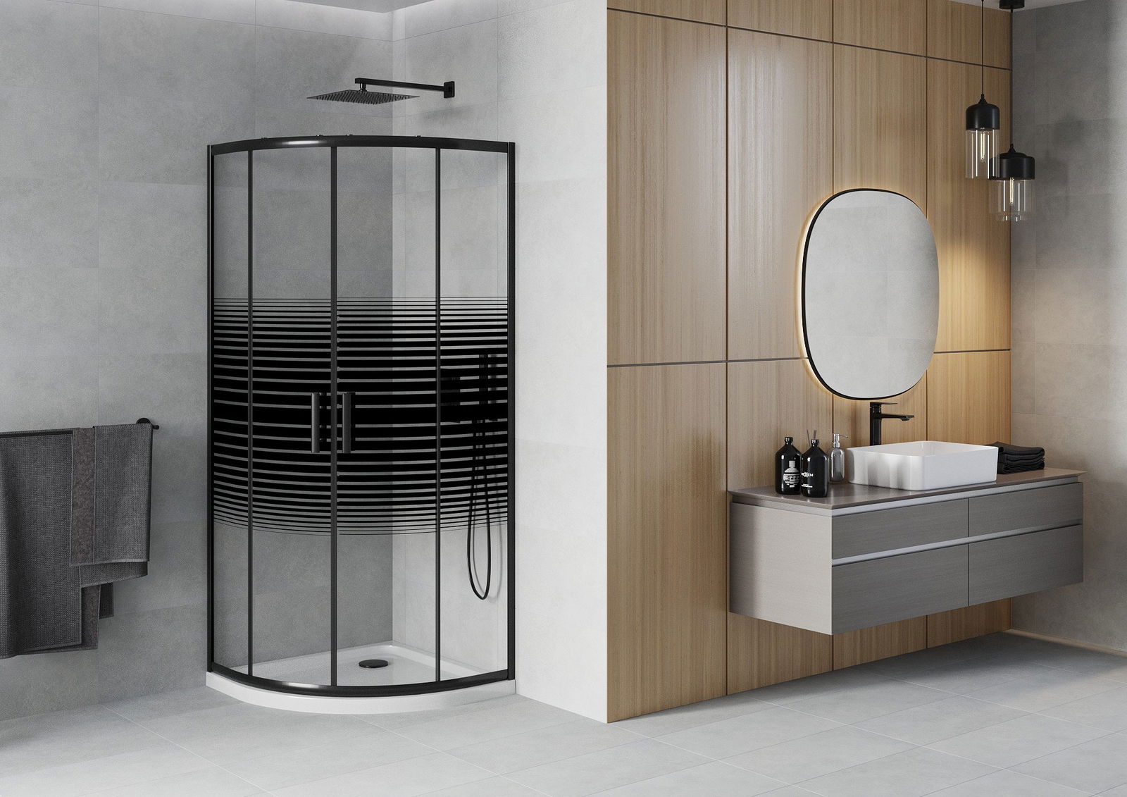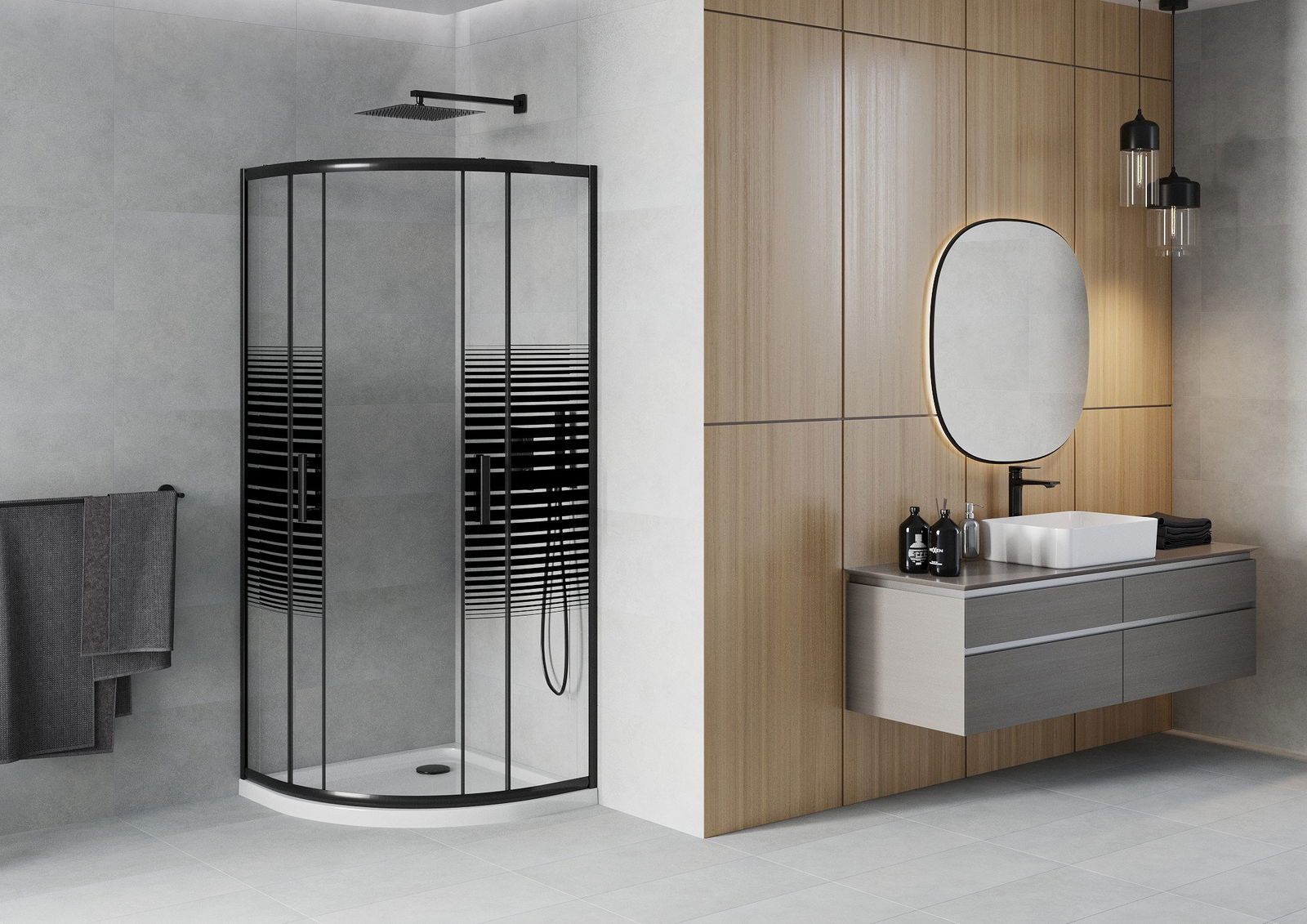 A handy and comfortable handle made from durable and resistant metal. Its trendy shape combined with a finish matched to the colour of the profiles gives the whole a modern and stylish look, highlighting the aesthetics of every bathroom.