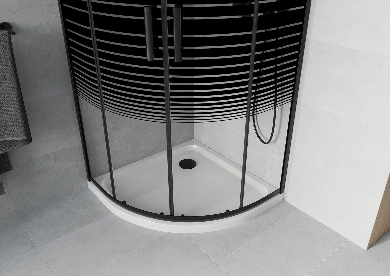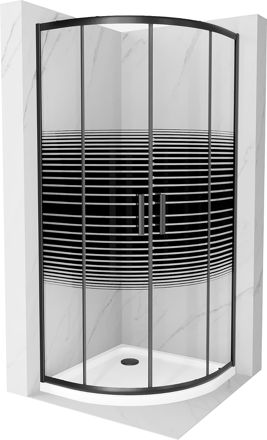 Mexen Rio semi-circular shower cabin 80 x 80 cm, black stripes, black + Flat shower tray, white - 863-080-080-70-20-4110B