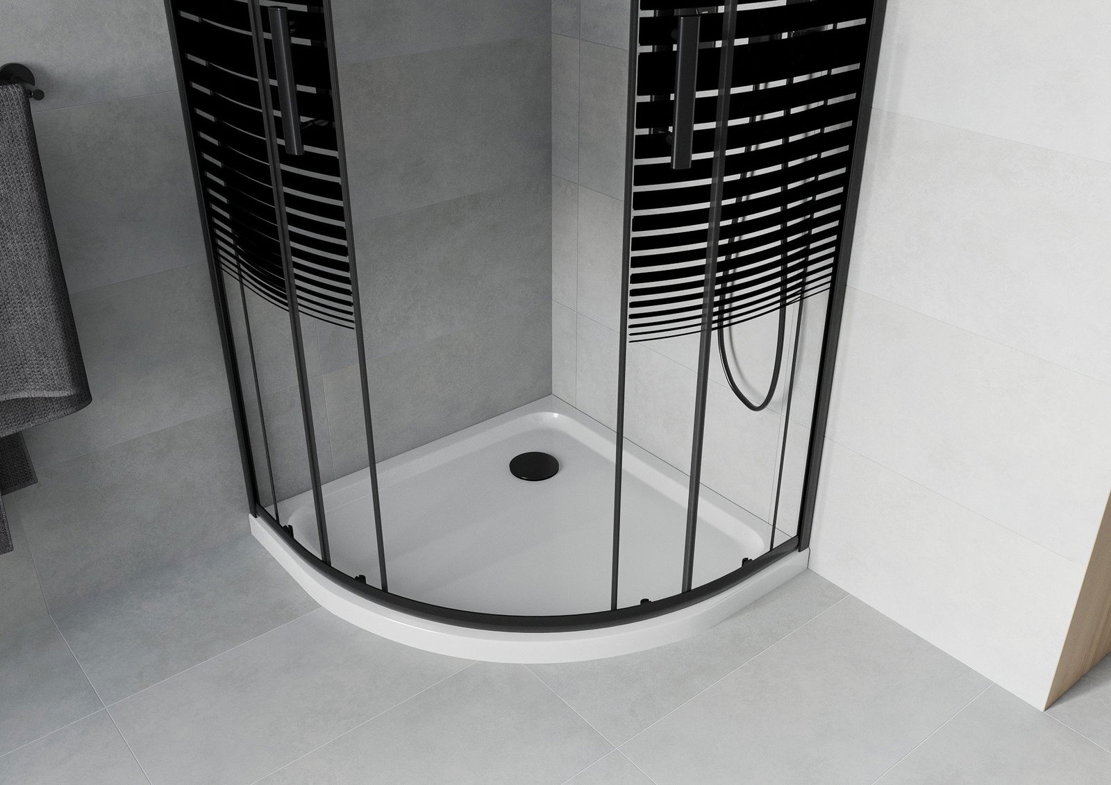 The shower tray is designed in such a way that water can freely flow towards the drain. It ensures quick and effective drainage of water from the surface of the shower tray, preventing the formation of puddles and flooding the bathroom.