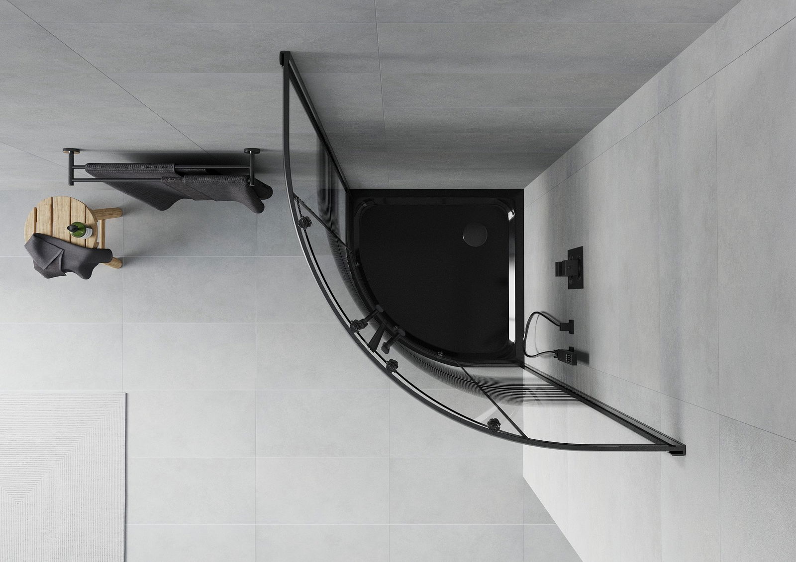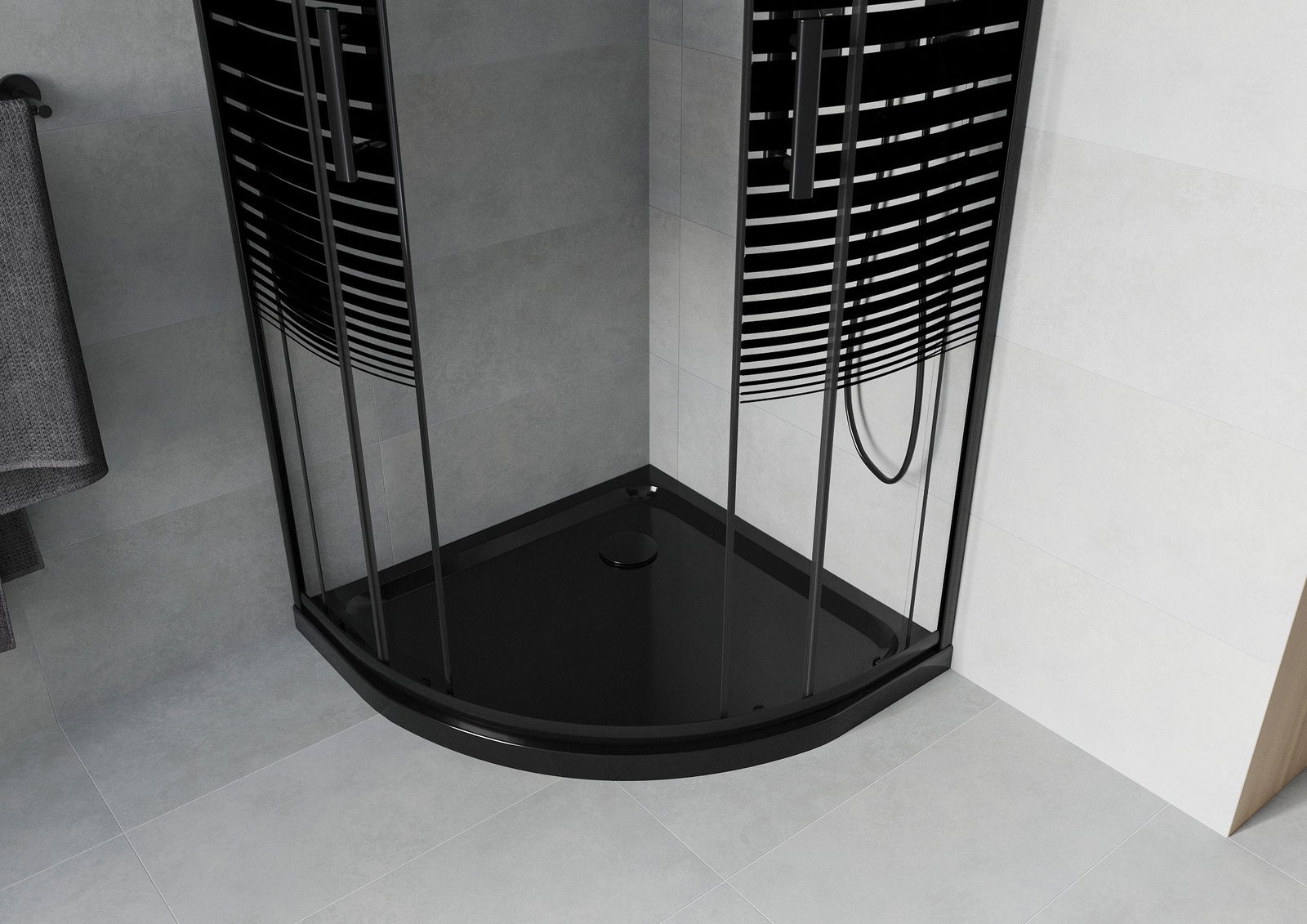 Mexen Rio semi-circular shower cabin 80 x 80 cm, black stripes, black + Flat tray, black - 863-080-080-70-20-4170B