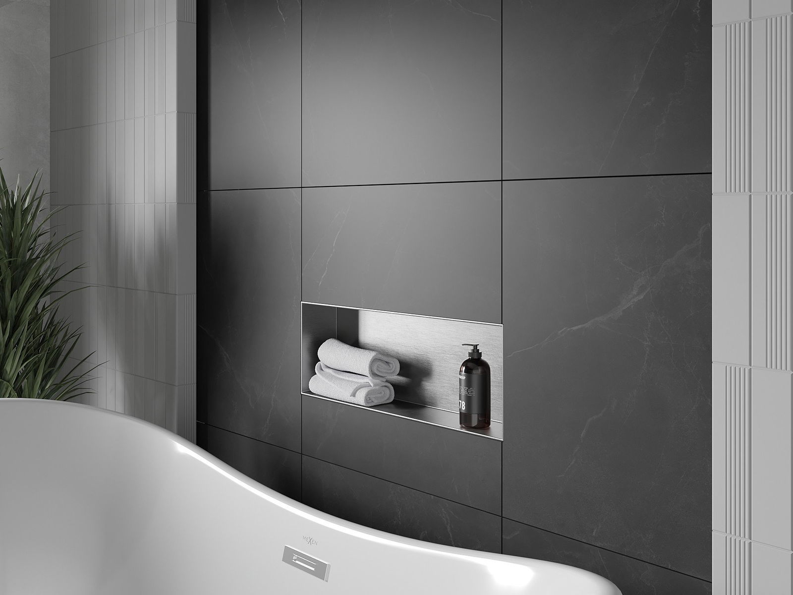 Mexen X-Wall-NR Recessed Shelf Without Flange 60 x 20 cm, Inox - 1911602010