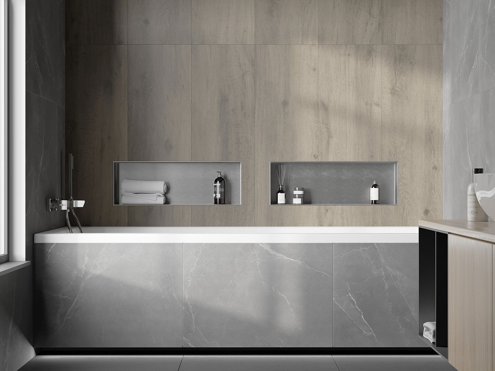 Possibility of installation in the wall or in a specially prepared building. It is an extremely modern and functional solution that allows you to save space and match the product to the aesthetics of the interior and create a coherent composition.
