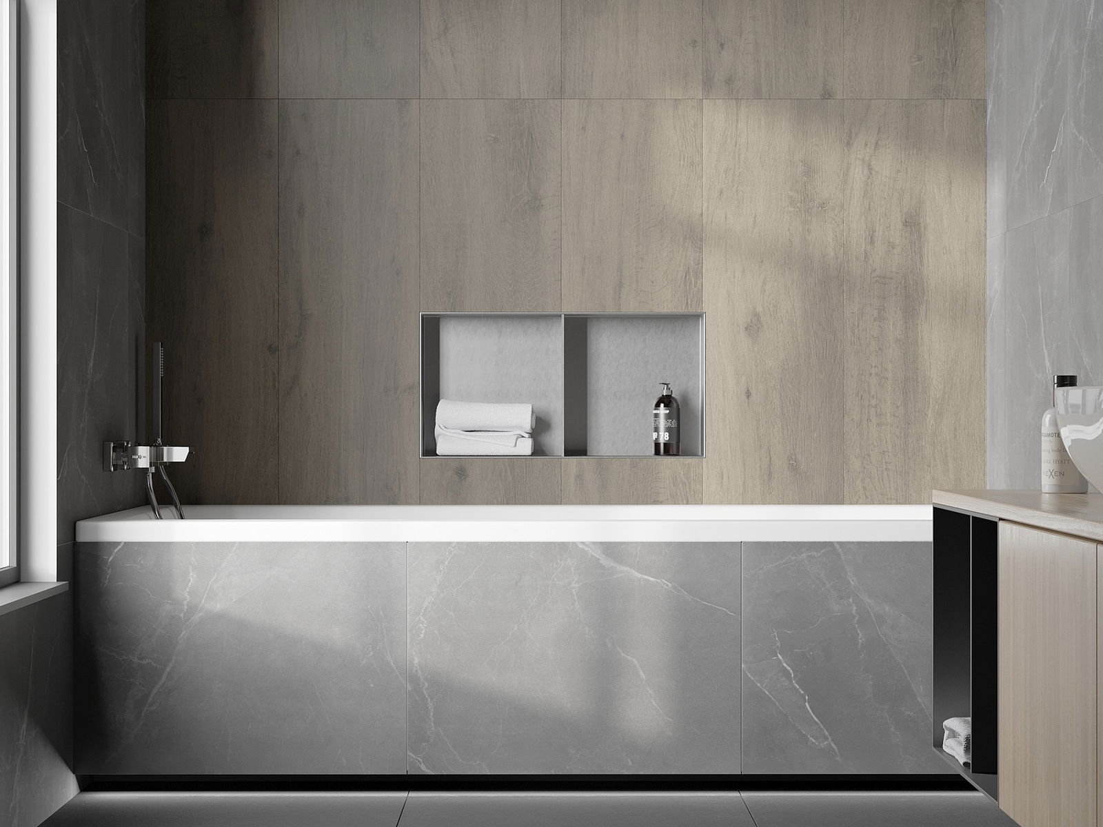 Possibility of installation in the wall or in a specially prepared building. It is an extremely modern and functional solution that allows you to save space and match the product to the aesthetics of the interior and create a coherent composition.