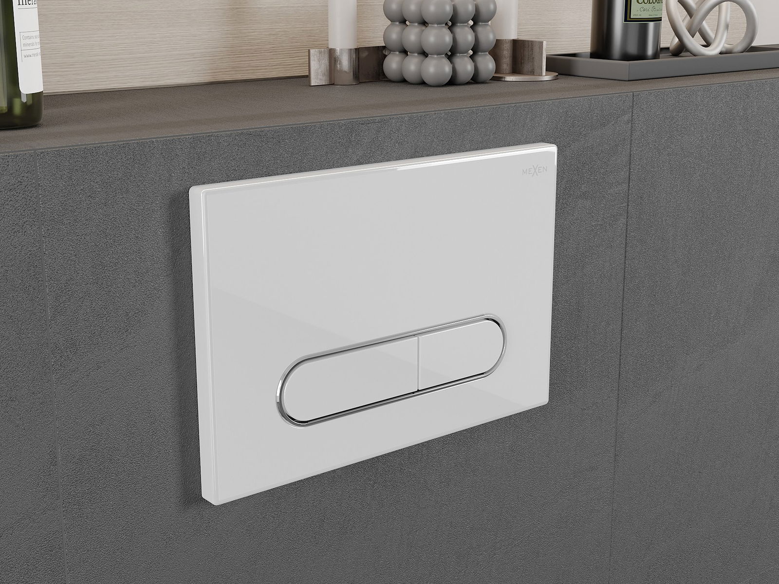 The button fits the frame from the Mexen Fenix Slim series, in which it is possible to install from the front. A popular and practical solution especially in bathrooms, where access to the button from the front is more comfortable.