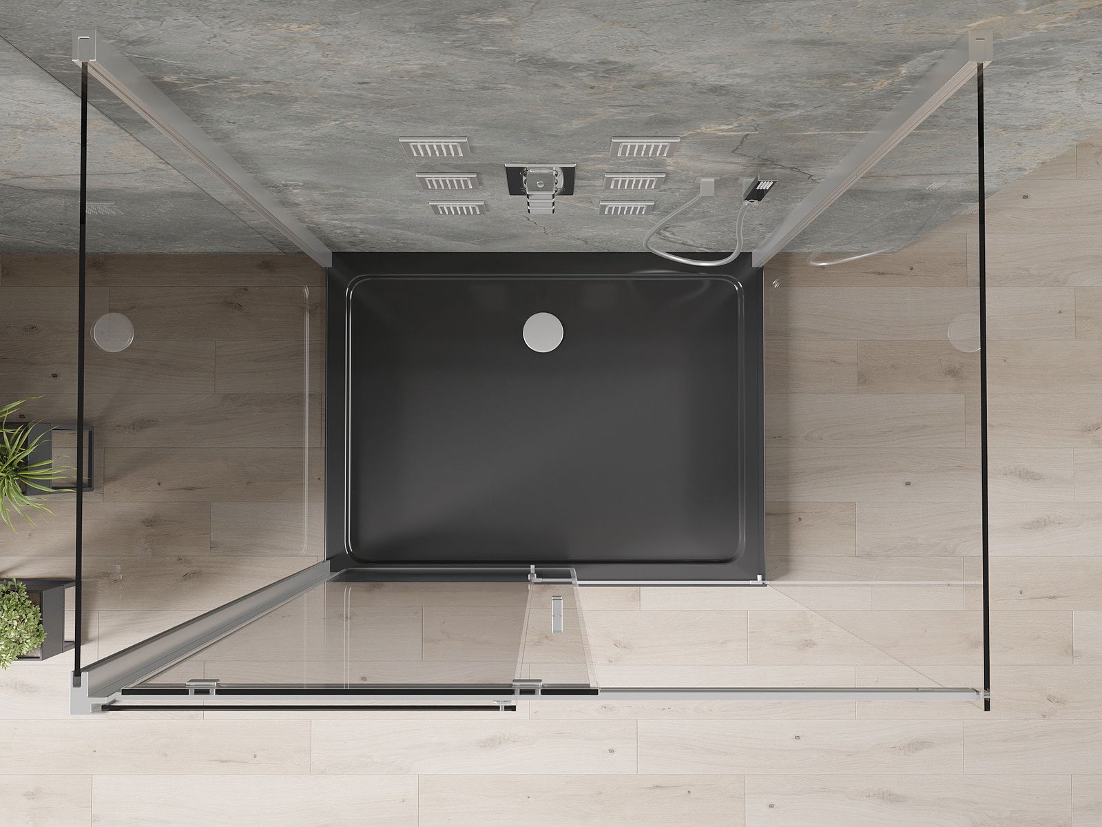 The shower tray is designed in such a way that water can freely flow towards the drain. It ensures quick and effective drainage of water from the surface of the shower tray, preventing the formation of puddles and flooding the bathroom.