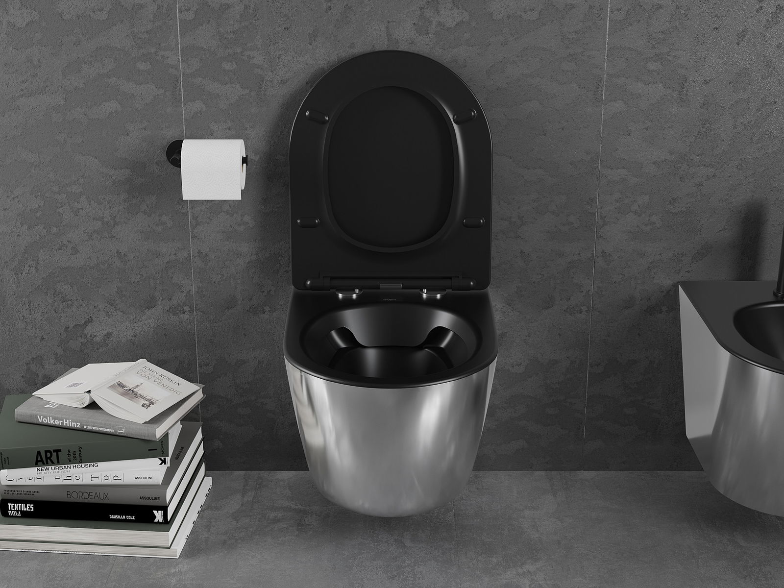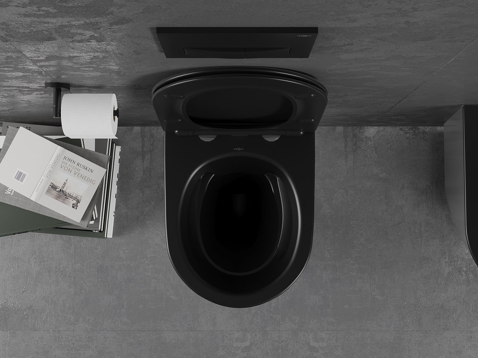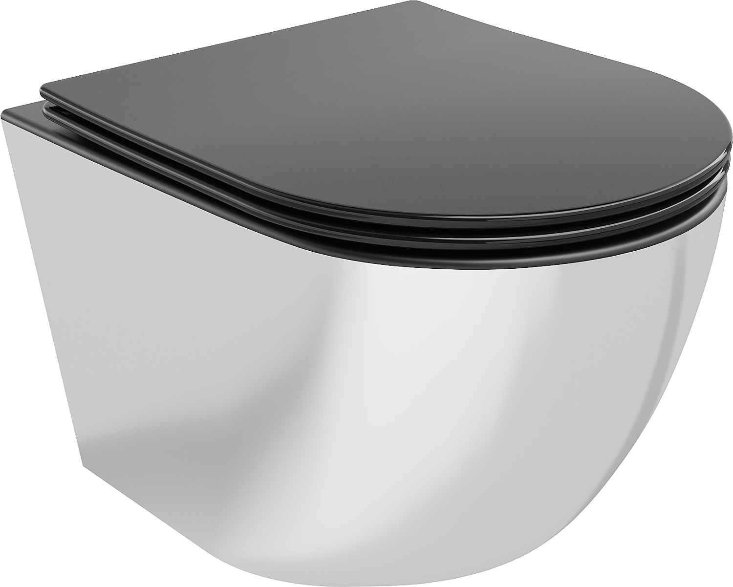 Mexen Lena Rimless WC Bowl with Slim Soft-Close Seat, Duroplast, Black Matte/Silver - 30224074