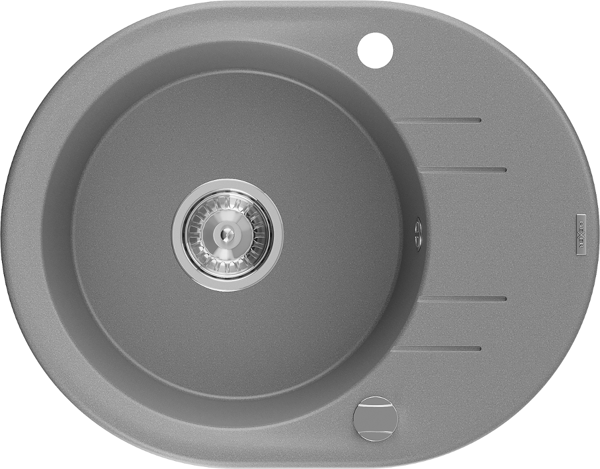Mexen Kevin granite sink 1-bowl with drainer 586 x 458 mm, grey, chrome siphon - 6517581005-71