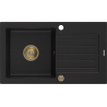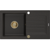 Mexen Pablo 1-bowl granite kitchen sink with drainer 752 x 436 mm, black speckled, gold siphon - 6510751010-76-G