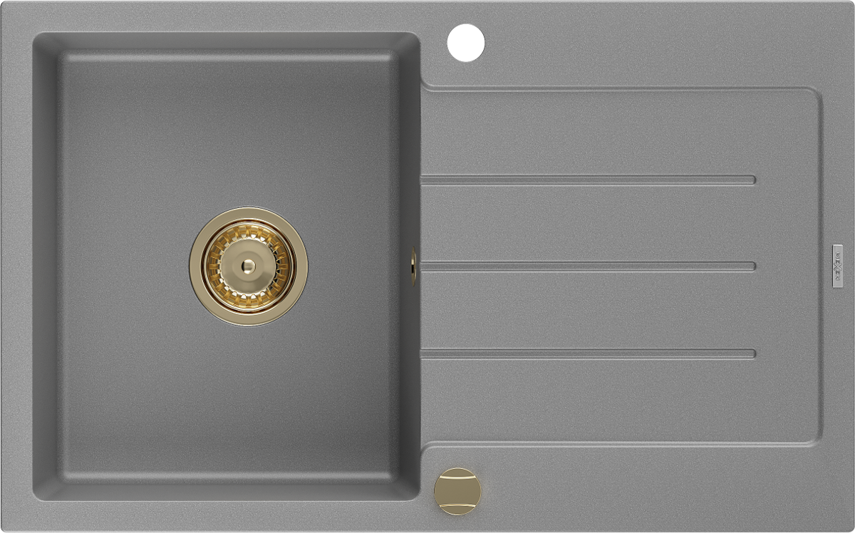 Mexen Bruno granite sink 1-bowl with drainer 795 x 495 mm, grey, gold siphon - 6513791010-71-G
