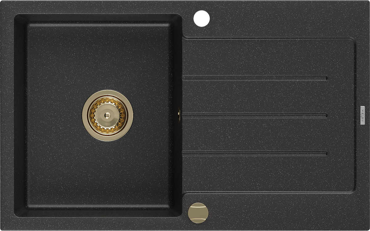 Mexen Bruno granite sink 1-bowl with drainer 795 x 495 mm, black/silver metallic, gold siphon - 6513791010-73-G