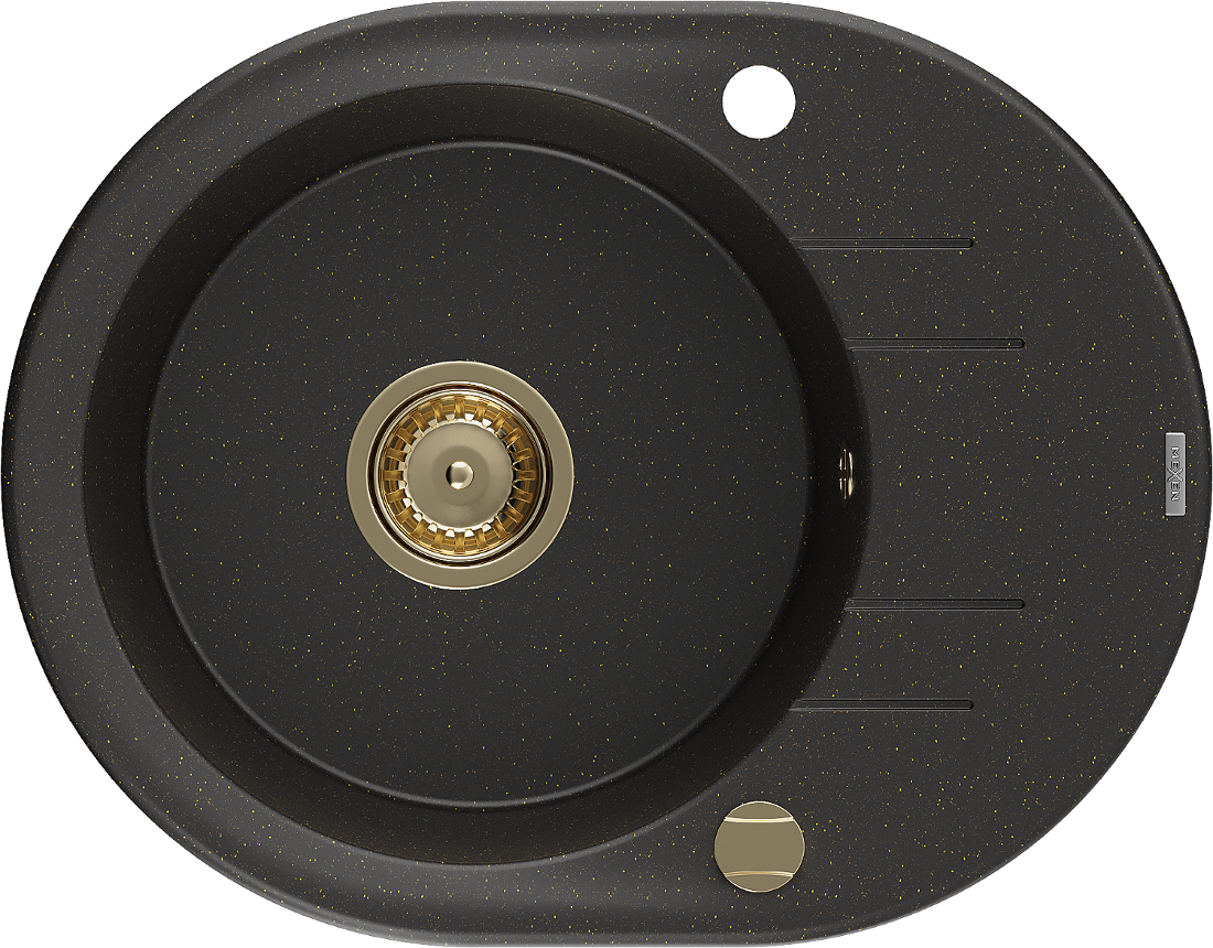 Mexen Kevin 1-bowl granite sink with drainer 586 x 458 mm, black/gold metallic, gold siphon - 6517581005-75-G