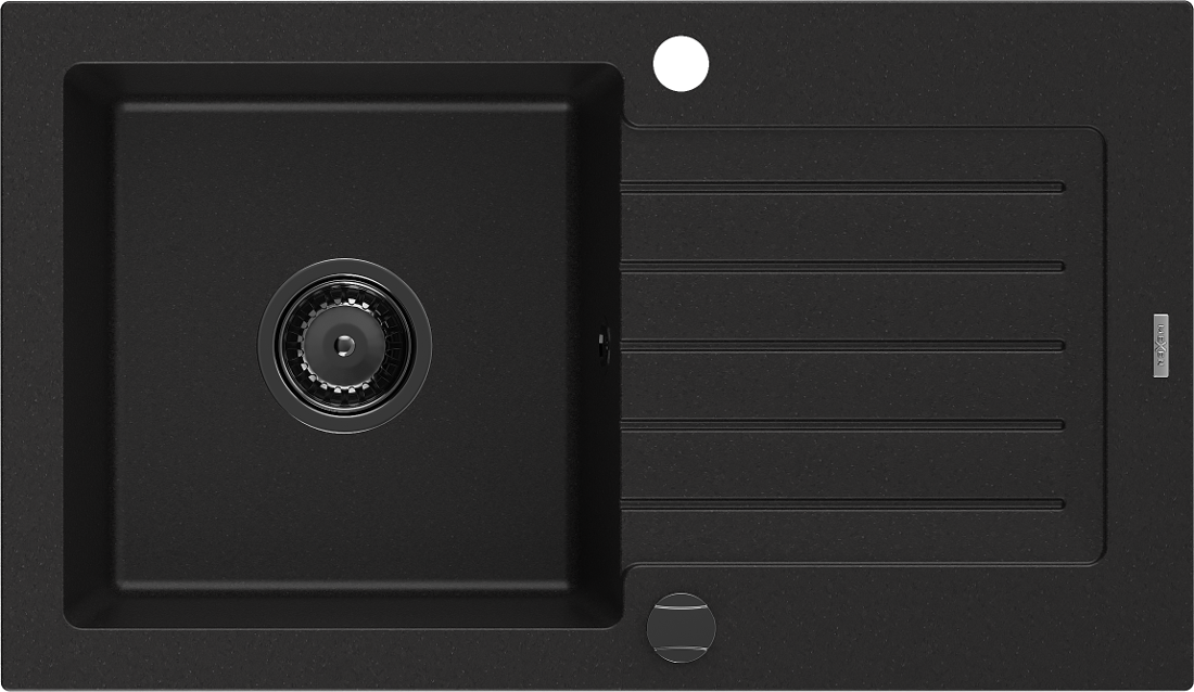 Mexen Pablo 1-bowl granite sink with drainer 752 x 436 mm, black, black siphon - 6510751010-77-B