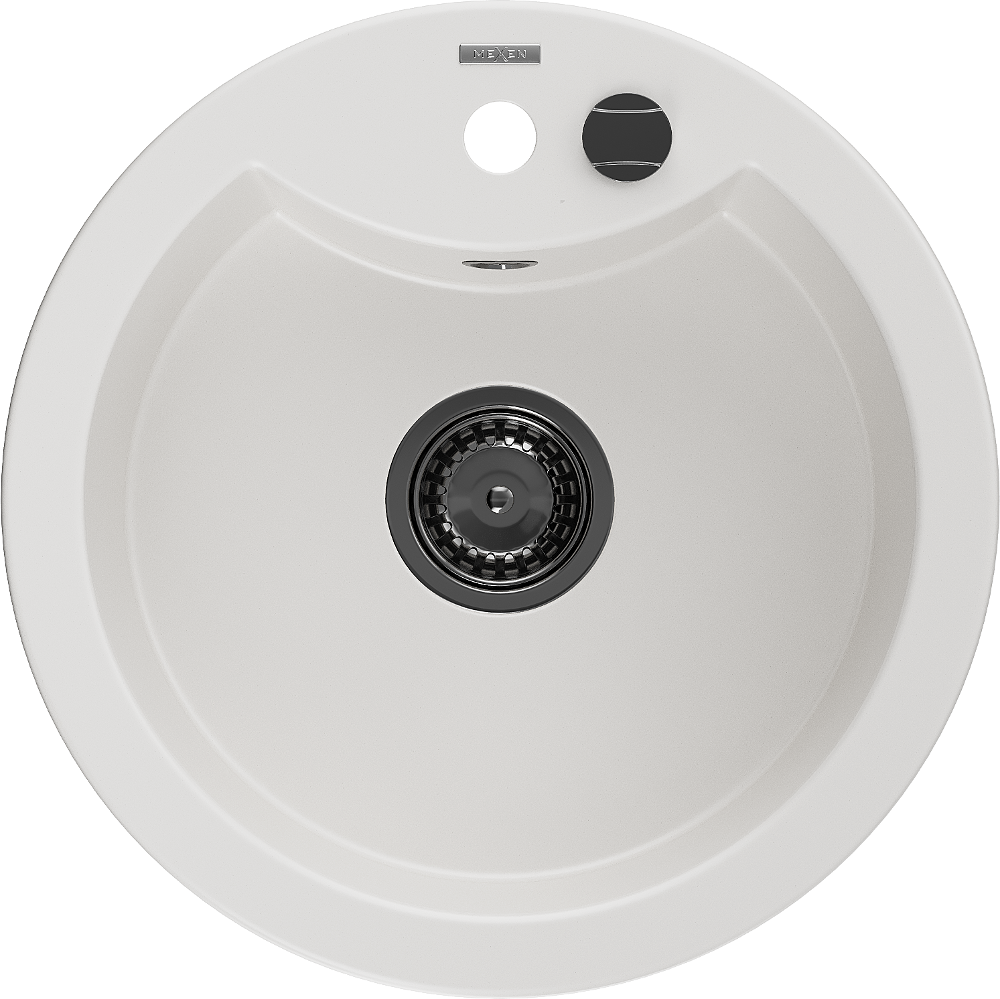 Mexen Diego granite sink single-bowl 488 x 480 mm, white, black siphon - 6512481000-20-B