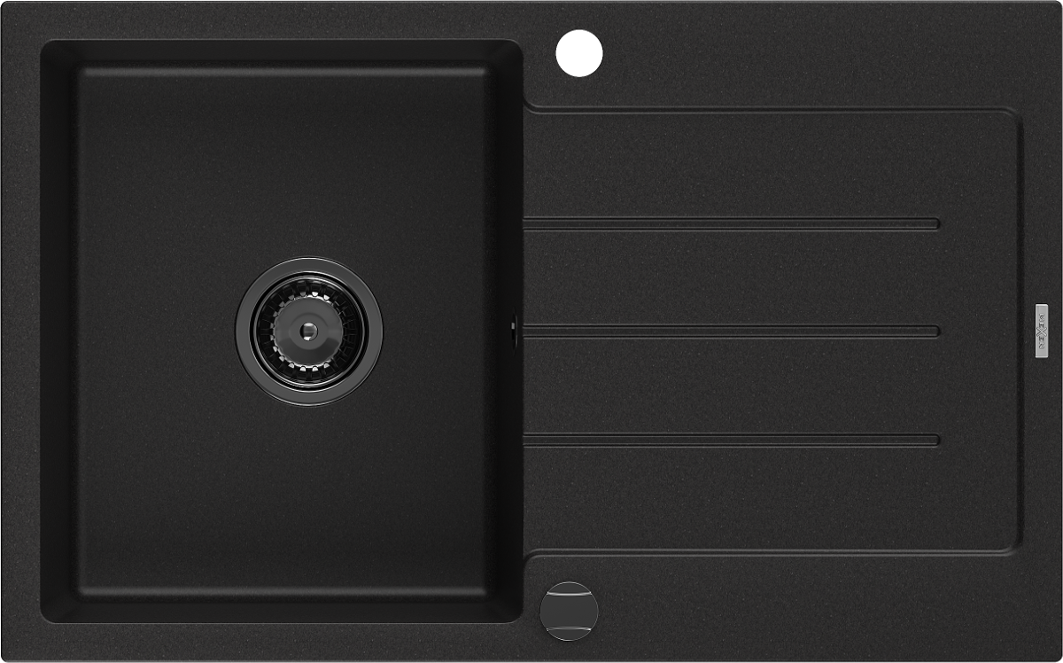 Mexen Bruno granite sink single-bowl with drainer 795 x 495 mm, black, black siphon - 6513791010-77-B